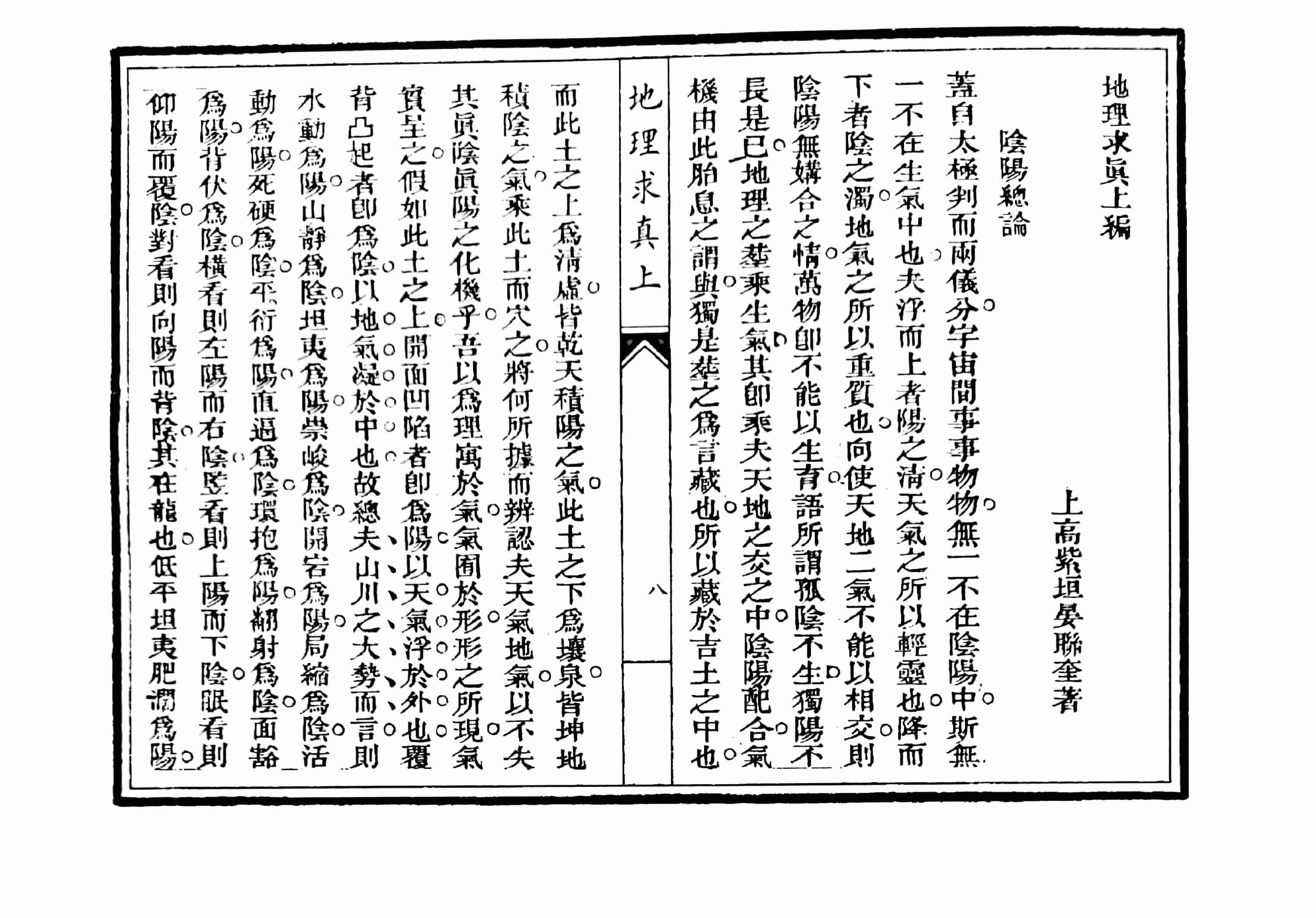 地理之学,与地术不同,地术者入门即知祸福,登山便识兴衰,以之验地则神而曲,以之扦坟则荒而谬,此盖异瑞邪jiao之所以惑世诬民也,若地理则不然,夫地者稟天之气以成形者也,而理即寓於形之中,故或峙而为山,或流而为水,刚柔清浊之各分其体,即吉凶善败之互显其应,其呈形也有目所共识,其為理也夫人皆可知,固非若业地术者之吞吐其说,隠怪其行,傲於人曰有秘诀,私诸已曰一灯油,一似地之在宇宙间,别有一道焉而不可以常理测者也,且夫荣枯得丧之散见於人世也,何一不关夫山川灵浊之气所以徵应哉,然试观发福之墓,有一人不知其为穴之吉者乎,败绝之塚,有一人不知其为坟之凶者乎,是地也,显诸形也,未尝不予人以可见也,载诸理也,未尝不合人以可知也,独奈何仰观俯察,古圣兼尽其学,后人并弃其功,遂置堪舆为专家,而究心此道者盖少,无惑乎江湖术士,皆得挟其技以遨游於巨家大族之门,而人卒莫之察,即闻有一二精明之士,知其术之足以误人而不可信也,又自囿於一知半解,转不能力破其奸而适滋其惑,嗟乎,此地理之所以日淆,而地术之所以日盛也,子深疾乎此,爰拽罗眾说,去其伪,存其诚,一切艰深刻苦之词,荒诞不经之论,槪置不用,编集其书曰求真,凡以订作案头缮本,以为一巳平时继开之资也,而二三同志见之,惩恶而付之梓,予不得已,勉为灾诸梨庚,即藉是以质之当世,庶几其或有以教我者乎。