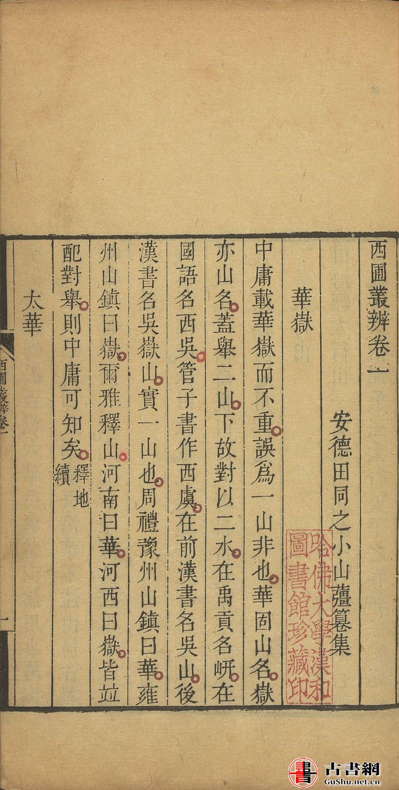 此《西圃丛辨》是清代田同之(晚号西圃)编撰的学术笔记。全书共三十二卷,包含:山川、人物、经史子集杂著碑铭石刻法书、诗词字句、文字音义、舆地城阙宫室楼亭堂馆桥梁寺观、古迹成语、称谓名号、草木鸟兽虫鱼、姓名、文物器制、饮食冠饰闲杂语事等类别。此为清乾隆时期刊本。