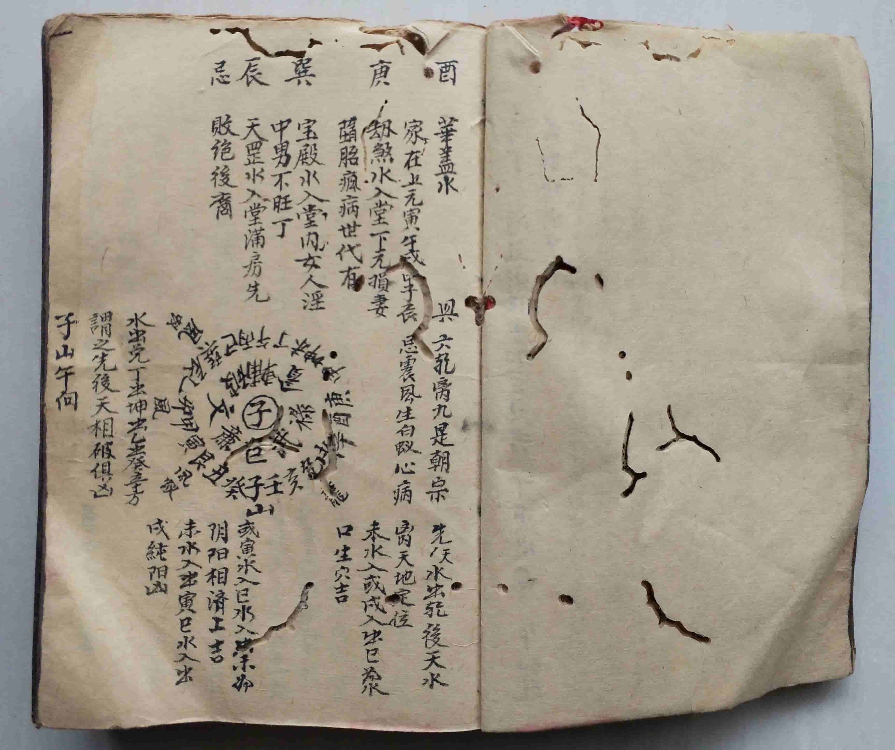 《看坟屋诀阳宅全秘》清代民间手抄本,全本共130页双面,部分页面有破损虫蛀。