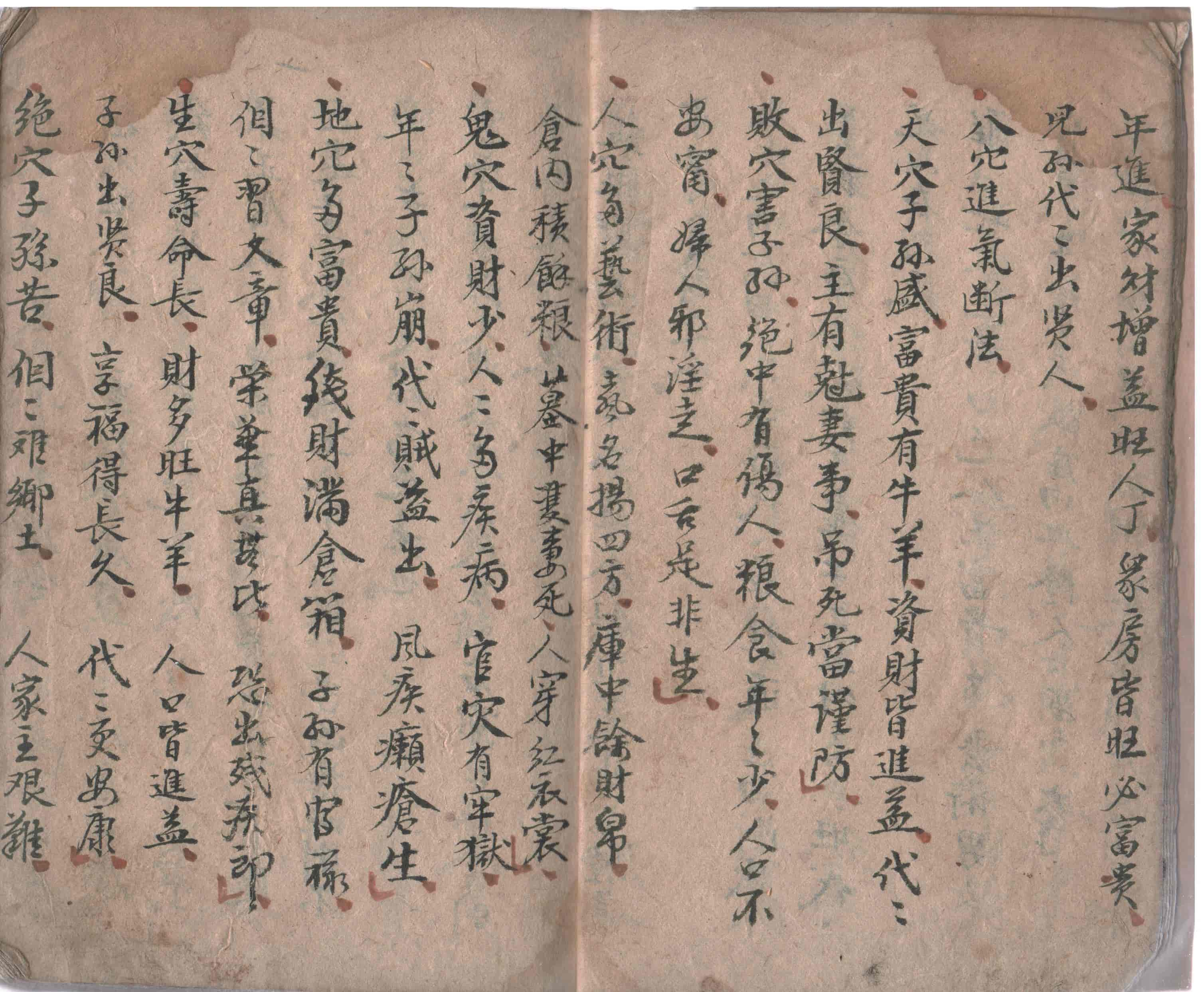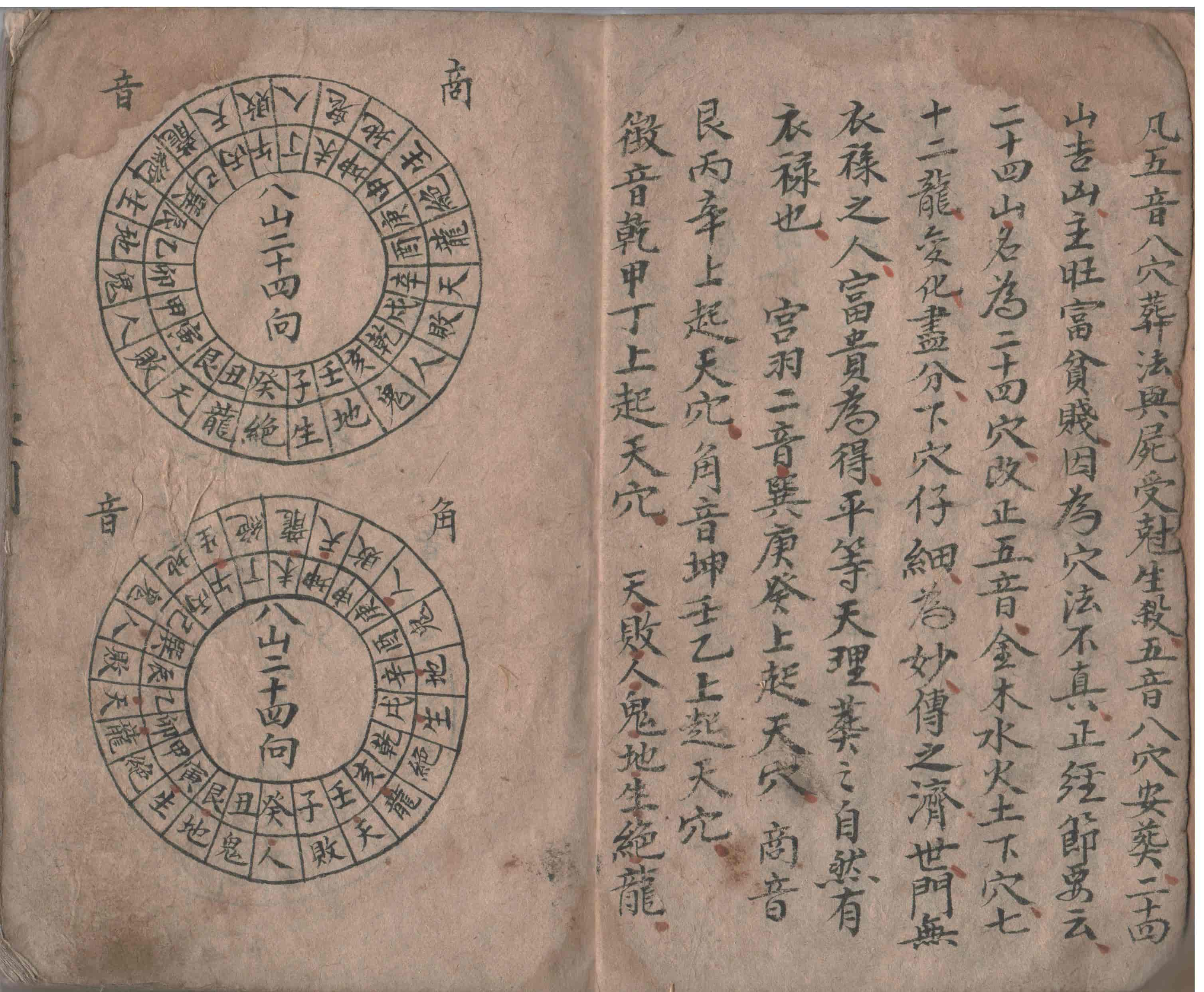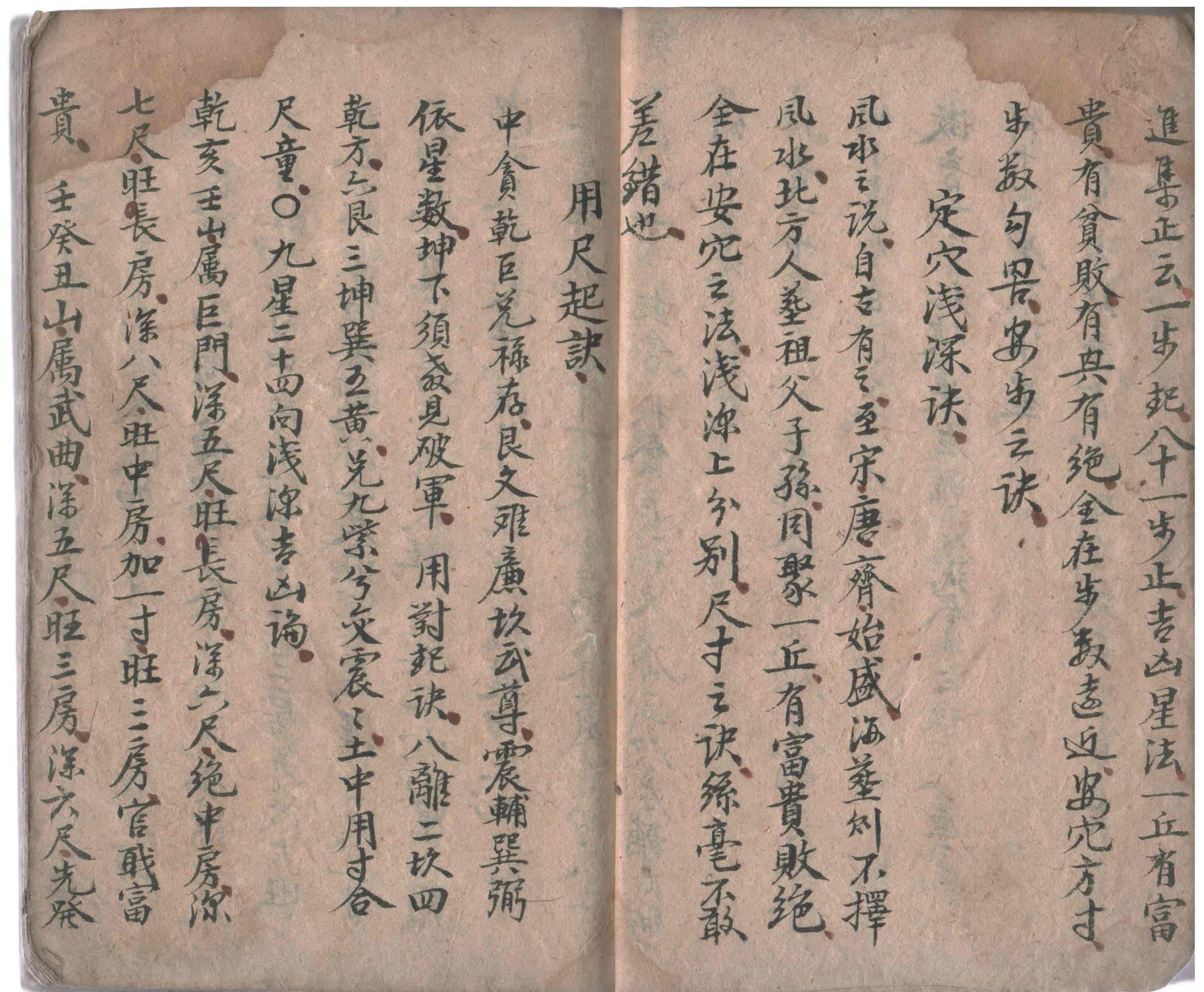 天心墓穴进气歌诀:墓穴进气世上稀,十个阴阳九不知,愚师不会进气法,候杀千千万万人,凡五音八穴葬法与尸受尅生杀,五音八穴安塟,二十四山吉凶,主旺富贫贱,因為穴法不真,正经节要云,二十四山,名為二四穴,改正五音,金木水火土下穴,七十二龙,变化,尽分,下穴仔细,為妙,传之济世,门无衣禄之人,富贵為得,平等天理,塟之自然有衣禄也。