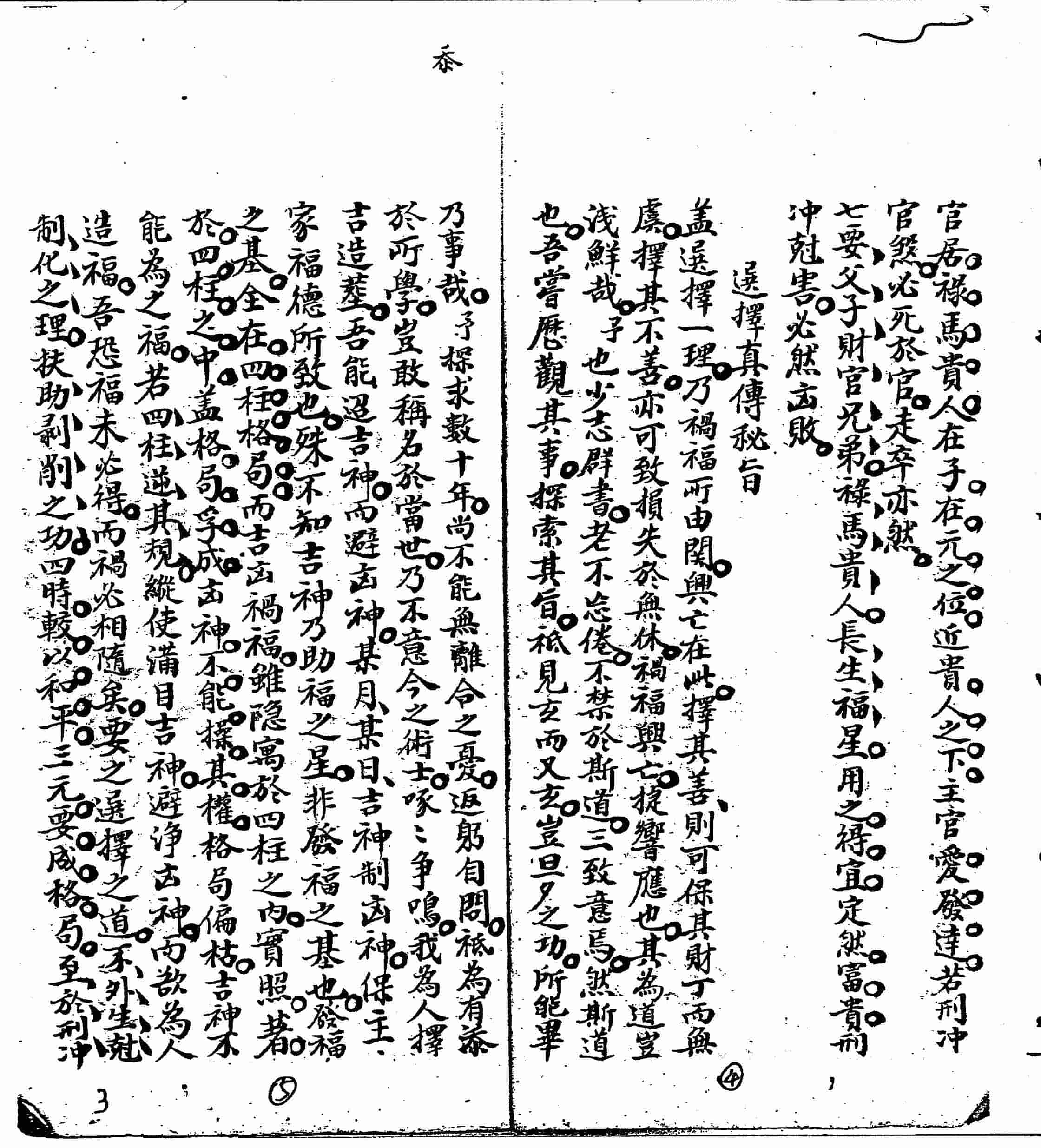 盖选择一理,乃祸福所由关,兴亡在此,择其善,则可保其财丁而无虞,择其不善,亦可致损失於无休,祸福兴亡,捷响应也,其為道岂浅鲜哉,予也少志群书,老不怠倦,不禁於斯道,三致意焉,然斯道也,吾尝厯观其事,探索其旨,祗见玄而又玄,岂旦昔之功,所能毕乃事哉,予探求数十年,尚不能无离合之忧,返躬自问,祗為有添於所学,岂敢称名於常世,乃不意今之术士,啄啄争鸣,我為人择吉造塟,吾能迢吉神,而避凶神,某月某日吉神制凶神,保主家福德所致也,殊不知吉神乃助福之星,非发福之基也,发福之基,全在四柱格局,而吉凶祸福,虽隐寓于四柱之内,宝照著于四柱之中,盖格局孚成凶神,不能操其权,格局偏枯,吉神不能为之福,若四柱逆其规,纵使满目吉神,避诤凶神,而欲为人造福,吾恐福未必得,而祸必相随矣,要之选择之道,不外生尅制化之理,扶助剥削之功,四时较以和平,三元要成格局,至于刑冲尅害所宜避,禄马贵人喜相随,有造主山家禄马贵人不同,山日冲岁不可作,有山头日主冲破岁君,生入,尅入最为贵,三峰先生之秘诀,孰识于心无差讹,传授固贵于师承,精微实出乎巧心,惜吾年之易遇,恨传授之无人,以致此道湮没,负吾平生之苦心也,夫吾今思之,追忆当日之师训,言犹在耳,终岂忘心,示以不传之人,转而思之,与其為后学计,孰若子為孙计,然其為道,至深而至广,其端绪,至繁而至博,而书尚有数部,一笔何能尽錄,不过约以要领,使其知所适从,示以本末,使知其所先后,所以守先贤之道,以待后之学者,庻几不免至沉没古先遗训也。