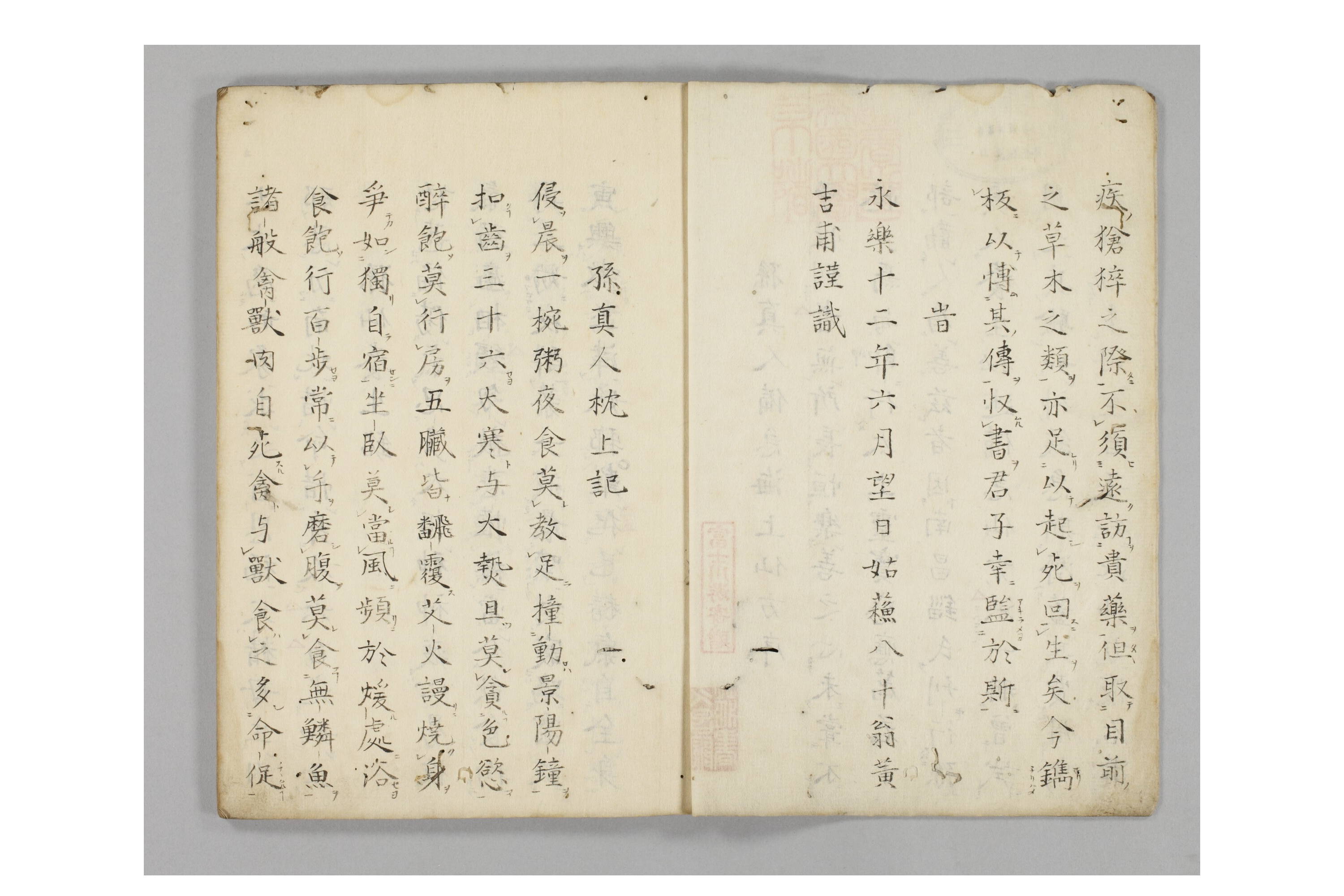《孙真人备急海上仙方》永乐十二年刊本,唐代孙思邈原著,玄盅子藏书。全书共56页。