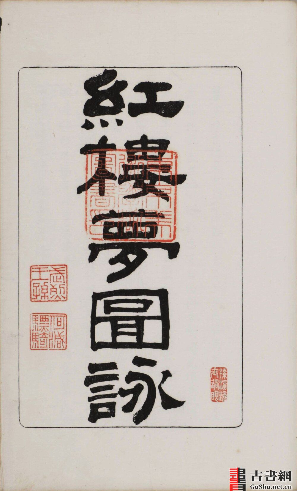 此《红楼梦图咏》为清代李光禄原辑,改琦绘图。全书共四册,描绘红楼梦主要人物形象约五十五人(始于:通灵宝石绛珠仙草、警幻仙子,终于:北静王、甄宝玉),插图五十幅,每幅图后附有名人题咏。此内含扁玉版三种、长玉版一种,最早为清光绪五年淮浦居士重编印行。