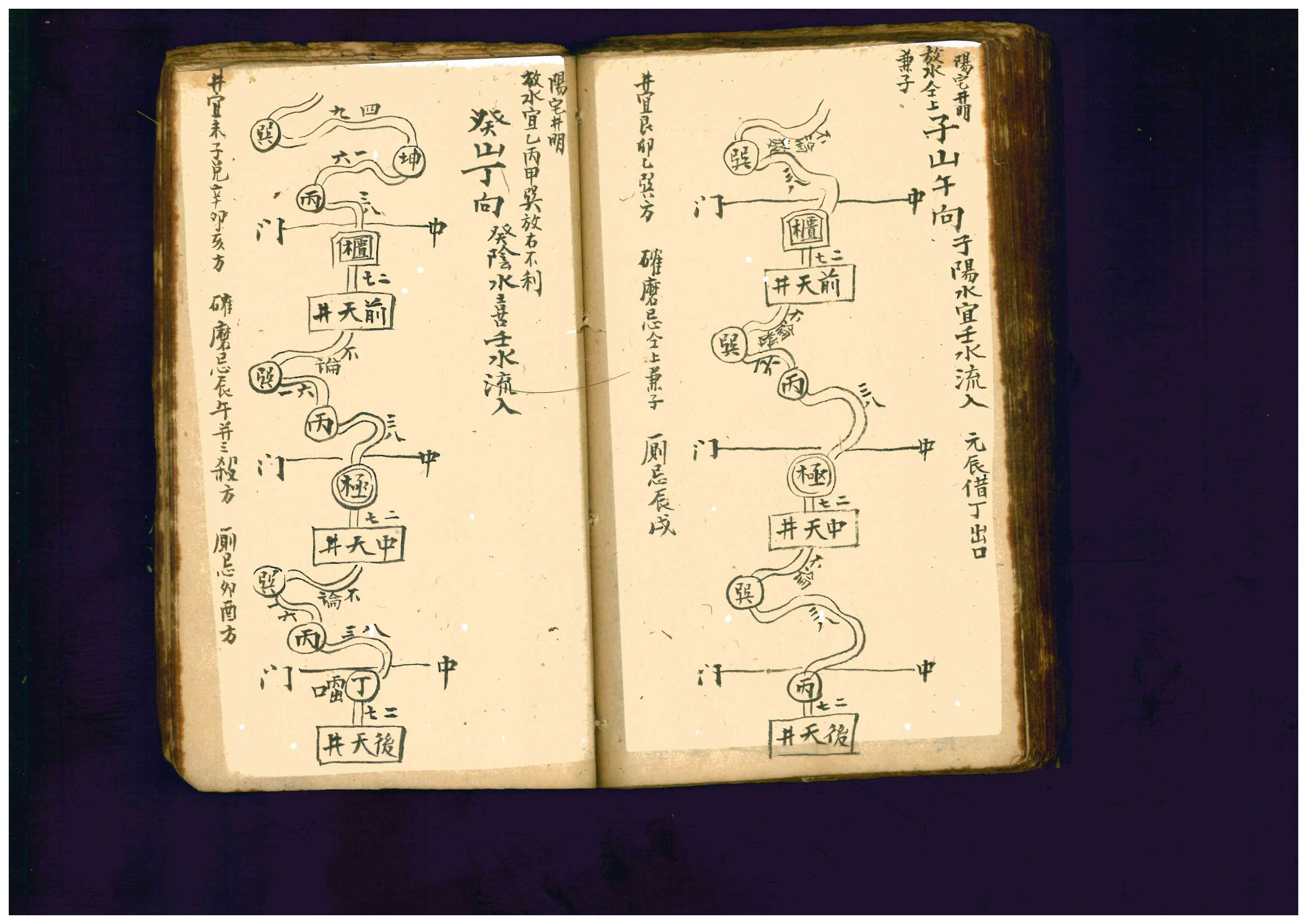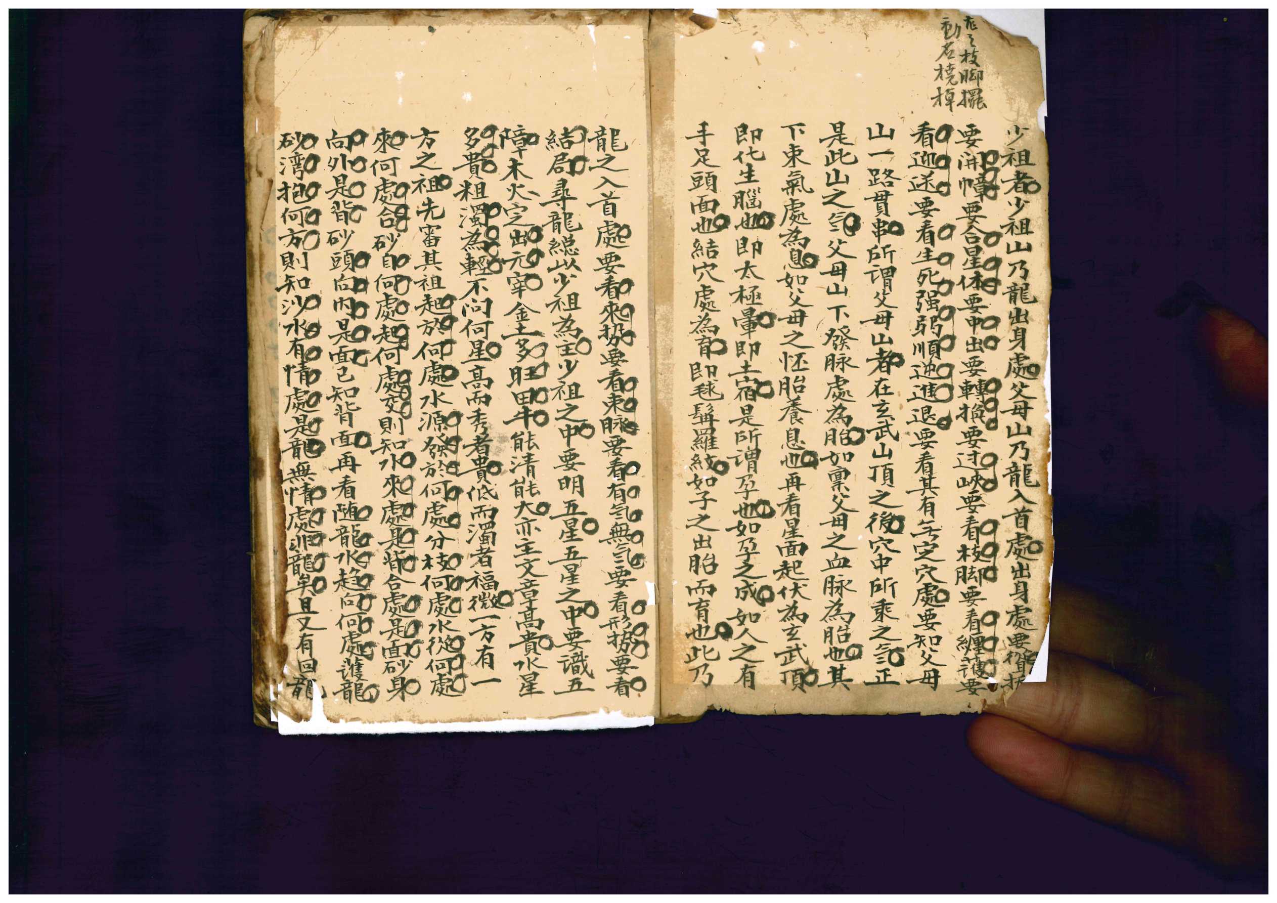 《阴阳宅地理汇宗》地理撮要,上中下3册,清.廖腾高家藏,全本共247个双面,合计494页。
