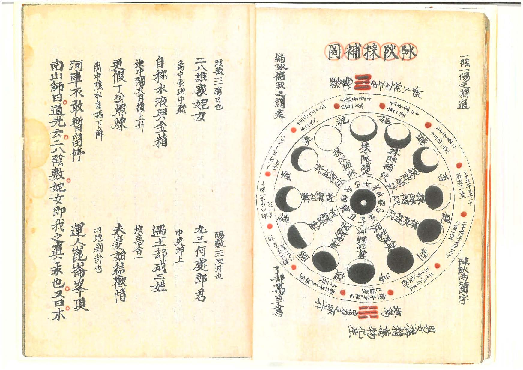 难拟议何也,盖古今仙师作註丹经,皆以阴阳精气欲汞鼎炉譬喻,内外丹药一时成功,学者即将自已精气而为,内药内丹以凡间铅汞而为,外药外丹妄作妄為,绵绵不已,至於自修精气者,数尽身亡,烧炼汞铅者家贫而死,此无他自执自迷之故也,仙师既以精气而为,内药汞铅而为,外药而葆光,又有曰安可以后天地生至阴之气类而为,内药耶安,可以后天地生凡砂凡汞凡铅凡汞凡银,非类滓质之物而为,外药耶仙师直闢力排学人仍不省悟,盲修瞎炼,至死不知,官见子曰,下银沌器执僻不通,若是上根大器之人知得关关雎鸠,这四句则知*人身中,运火行符结丹之处,亲见得一箇西江月,发现出来如始如终,名曰内药,即看此月从子行至巳位,谓之无中生有,是内阴而外阳,此进火之内外也,若以精气言之,是内精而外气,此精气之内外也,若以铅汞言之,是内汞而外铅,此铅汞之内外也,此之谓内有天然真火,内药以了性也,再看此月自午行至亥位,谓之有有化为无,是外阴而内阳,此退火之外内也,若以气精言之是外精而内气,此气精之外内也,若以汞铅言之,外汞而内铅此汞铅之外内也,此之谓外炉増减要勤功,外药以了命也,参同契曰,春夏处内体从子到辰巳,秋冬当外用,自午乾戍亥,此乃温养两般作用之内外也,纯阳翁云,内丹成外丹,就内外相接和诸,偶结结成一块紫金丸,变化飞腾天地人,此乃丹头和合类相同之内外也,内外相同,故曰真种子,予观圣人所教内外者,皆指目中所见之内外也,而非幽冥不见之内外也,且如天上晦日,太阴之上人皆见之,此乃内阴而外阳,喻之内精而外气,内汞而外铅,内叶而外丹也,知此理者,玩吾图中,以及旁註,则内外二字皆可得之於心目之间矣。
