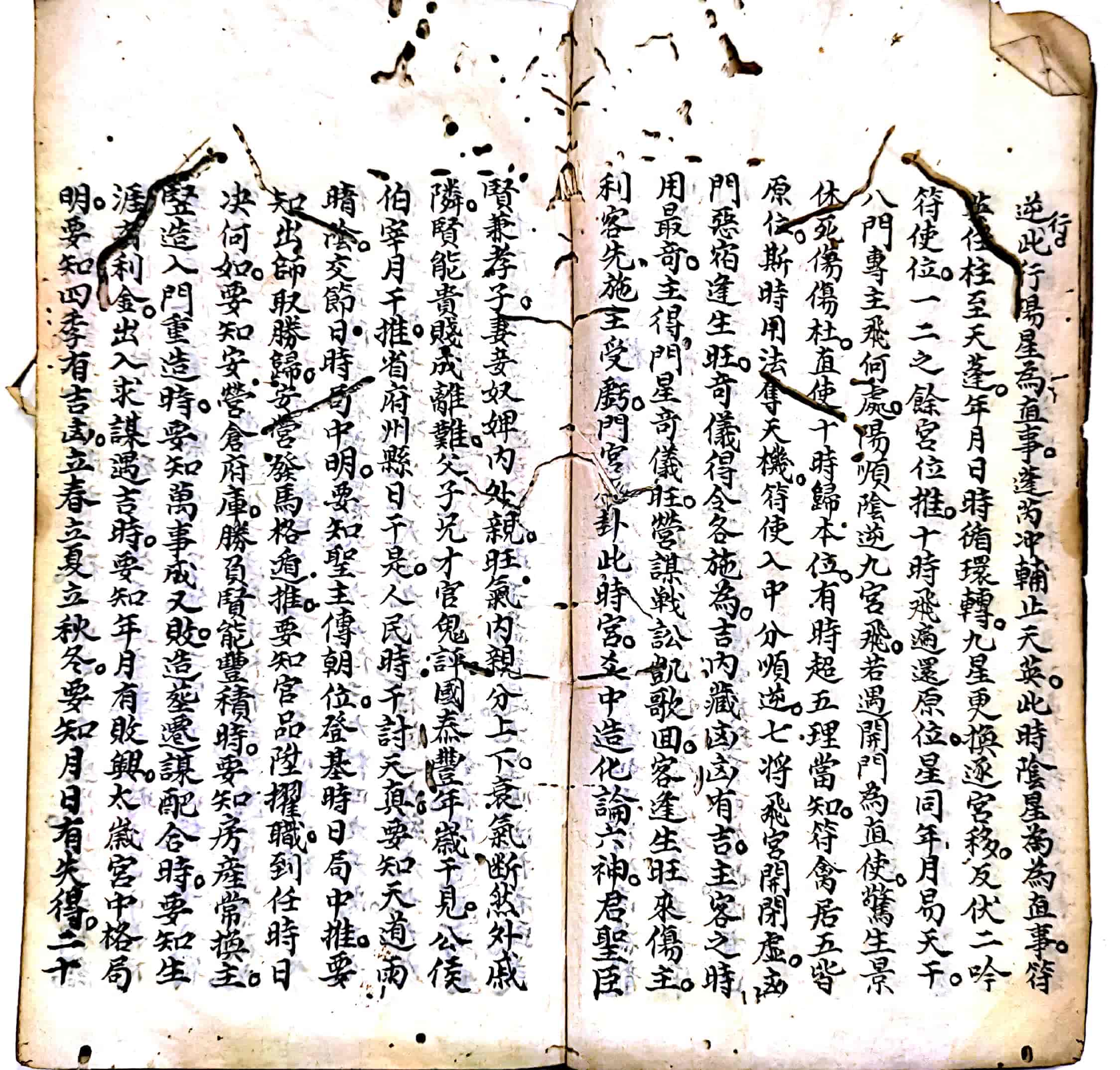 《甘氏汇集奇门一得》手抄本,全本共138个双面,合计276页,末尾几页稍有破损。