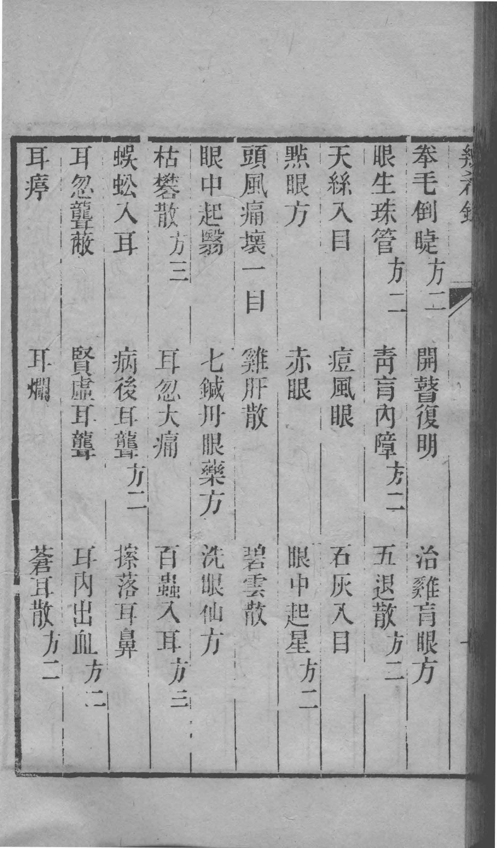 卷首以歌赋体裁论述旧的伦理道德,共载十七类醒世格言,与医学无涉;卷1-2为验方选,收载治疗头、眼、耳、鼻、口、舌、牙齿、咽喉等各科病证方剂,末附庄一夔《遂生编》。卷一以治头目疾患及内科杂症为主;卷二以治外科疮疡为主,并分救急诸症、怪痰门、小儿门、胎产门及良方续录,共录方约一千余首,均有组成、剂量及用法。