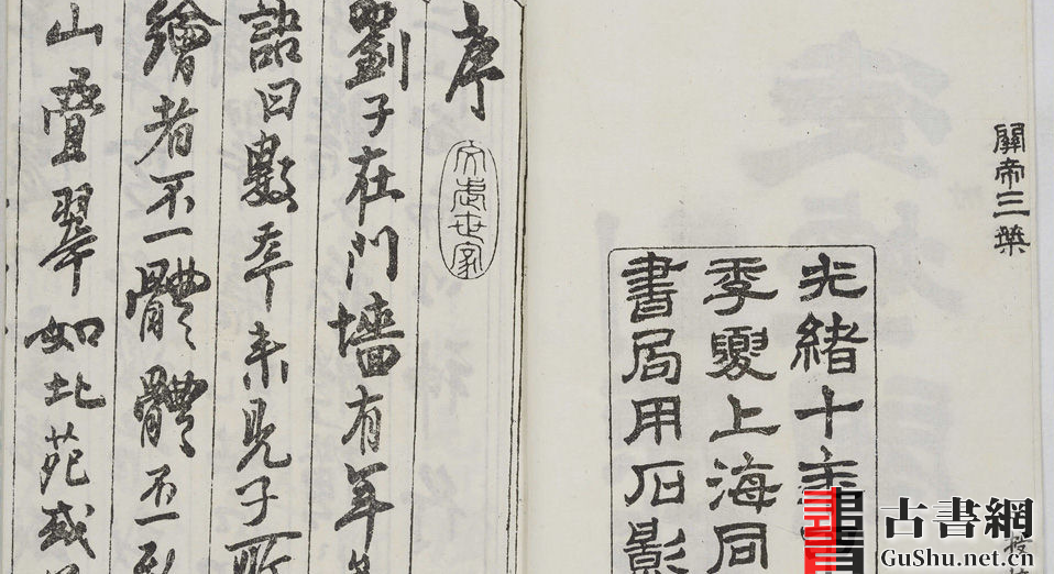 此清康熙年间刘源绘制的《凌烟阁功臣图》是一部以唐代历史人物为题材,颂扬功臣忠节,旨在表示对大清国忠心的书籍。除了24功臣像(每像都附题赞)。书末还附3幅观音大士像及3幅关圣帝君像,总共30幅。此本为光绪10年(1884)上海同文书局石印本。