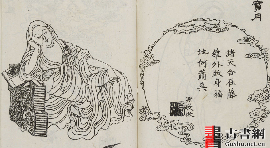 插图由吴中名匠朱圭刊刻,朱圭堪称是这个时代的雕刻骄子。在这些人物画上,大都画着缜密的花纹图案,细如毫毛,诸如屈突通、李世绩着身的盔甲,纹饰细密,但端其每笔,都刻得很清晰。关公、魏征的胡须,不仅线条精细,而且还刻得生动、自然,令人折服。观音、罗汉、关公、周仓身上的衣纹,可谓柔媚如春蚕吐丝,同时做到了”细巧求力”。