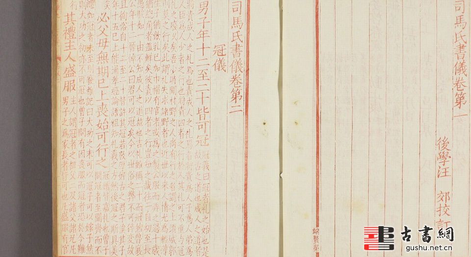 扉页上刻有:“同治七年夏四月,江苏书局将复刻司马文正《资治通鉴》胡注兴文署本,刻手杂募,不能识别良拙,乃以文正《书仪》归安汪氏仿宋本,各试刻一页,第其去留,未匝月而工完。”