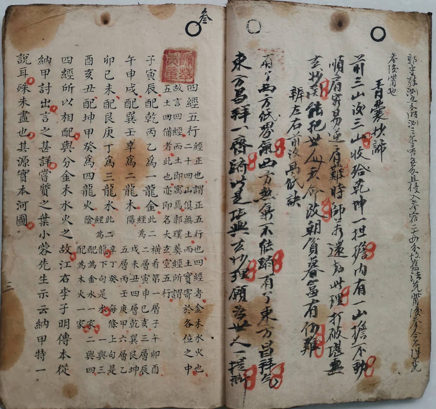 上册有晓川先生之阳宅风水、著名梅山地方风水名师独树一格的堪舆心得,内容有:十干化禄、乾元秘旨、四经五行、四经阴阳、地学门路、高氏(文良公)图说、四大水口总决、四大水口立向诀、黄泉真诀、三盘秘窍(此条不可轻洩与人)、零正二字解并水口宜忌要旨、雪天觅地法、紫白赋、参改龙经序、看过峡法等。