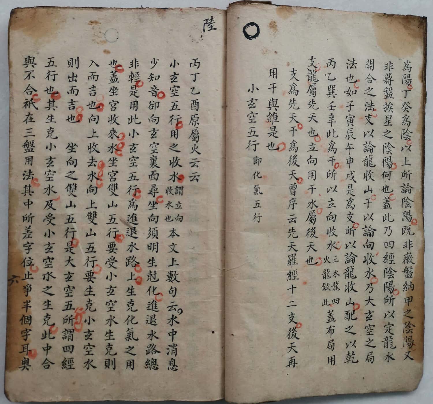 水口详於玉尺,辰為水库,戌為火库,丑为金库,未為木库,此四口也,双双起之法,即从水口而分,请先论水口,盖水口各有左右旋,凡左水倒右谓之左旋,以壬子盘格水癸子盘格峰,右水倒左谓之右旋,以癸子盘格水壬子盘格峰,左旋顺行右旋逆转,壬子盘为顺,癸子盘為逆,壬子盘者,壬子同宫,癸丑同宫,良寅、甲卯、乙辰、巽已、丙午、丁未、坤申、庚酉、辛戌、乾亥皆然,癸子盘者,子癸同宫,丑艮同宫,寅甲、卯乙、辰巽、已丙、午丁、未坤、申庚、酉辛、戌乾、亥壬皆然,癸子盘同宫者,皆禄,谓癸禄居子,良禄居丑之类,壬子盘同宫者,皆刀,盖禄前一位為阳刃,子前则壬,丑前则癸之类,用法要随龙局以為配合,倪公阳宅水法取禄不取刃,乃一偏之论耳,地盘正针所以格龙,此一定之法,如地之静而不动也,壬子癸子,两盘谓之天盘,随左右旋之不同格,水格峰,因局而异,如天之变动不拘也,时师不明此义,以正针為地盘,中针為人盘,缝针为天盘,乃后人所加之名也。