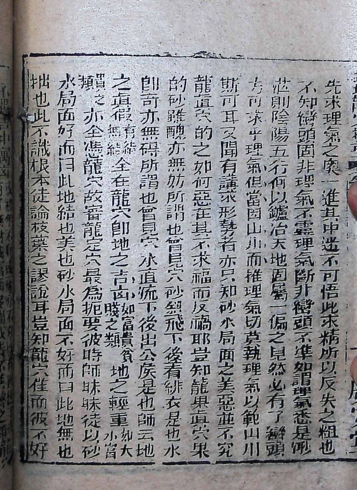吾见今之為地师者矣,甫识一丁字,即取世信谬悠之书意為揣摩,挟大罗经走田塍山角譁龙号扵众曰,某地富某地贵某地旺,丁主者利,其地之可以速售而得善价也,传述而夸耀之又恐其说之无微而不是取信也,则传首下心而询究之,彼印证以谬悠之书立者,入市果得是书,洹而意為揣摩迁相传授,又一地师出百地师出矣,此谬然之书之害人也,其文人墨容稍知信说之失剽窃杨曾绪尔,以逞雄辨而是远不逾百里,终日讲求皆经上之峦头,画中之砂敏而不知形。