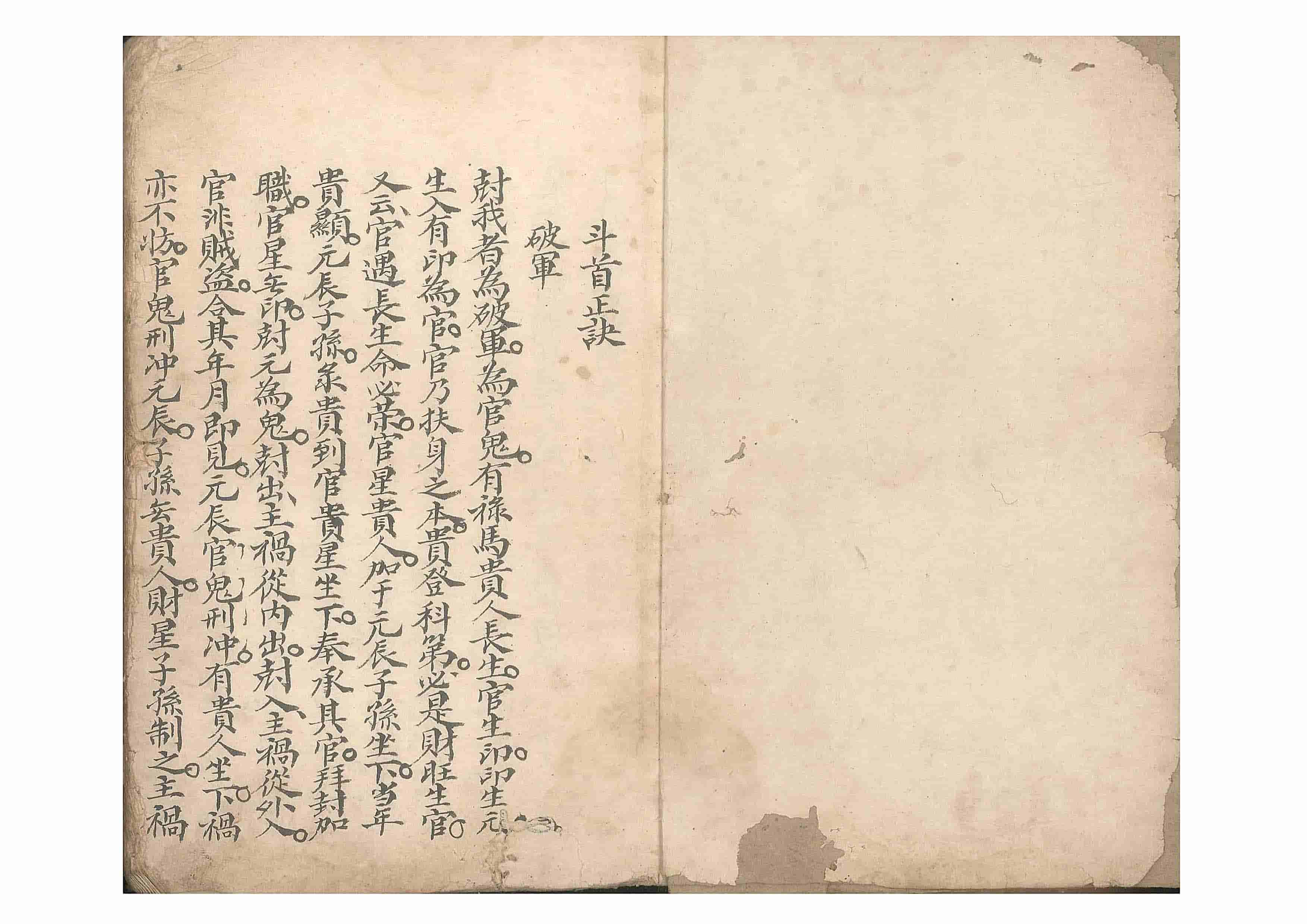 《斗首正诀》,全本40个双面,合计80页,部分页面有破损。