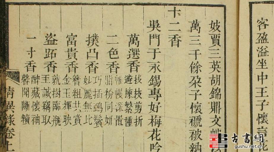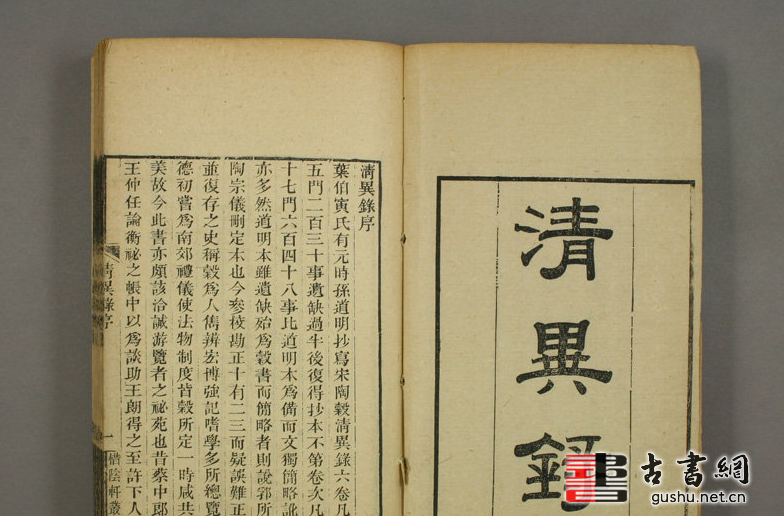 《清异录》二卷,北宋,陶谷著,是一部笔记,它借鉴类书的形式,分为天文、地理、君道、官志、人事、女行、君子、么麽、释族、仙宗、草、木、花、果、蔬、药、禽、兽、虫、鱼、肢体、作用、居室、衣服、粧饰、陈设、器具、文用、武器、酒浆、茗荈、馔羞、薰燎、丧葬、鬼、神、妖,共三十七门,每门若干条。