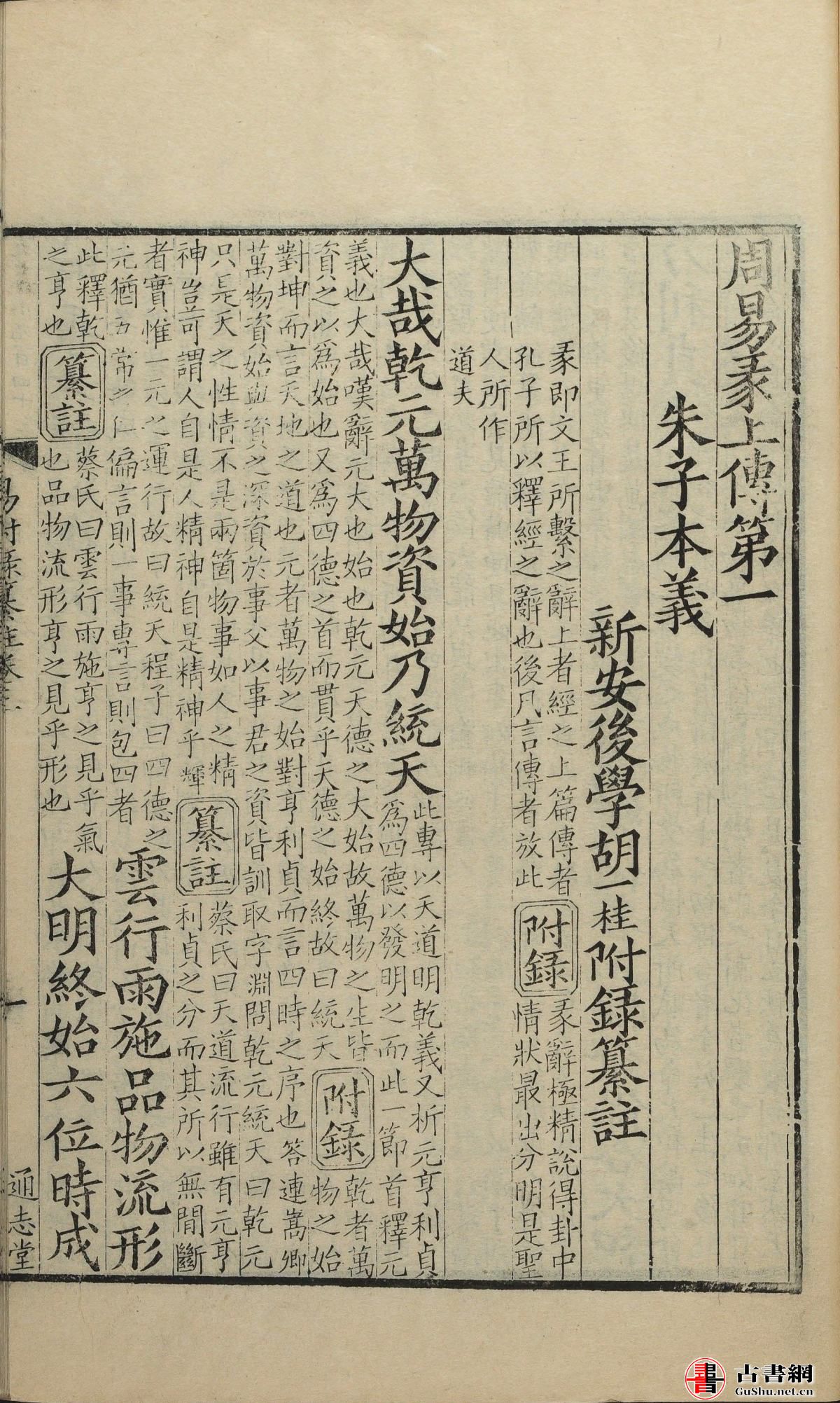 此书采用了元代流行的 “纂疏体”,《本义》原文下,采朱子文集、语录等为 “附录”,又采诸家解说及胡氏自注为 “纂注”。