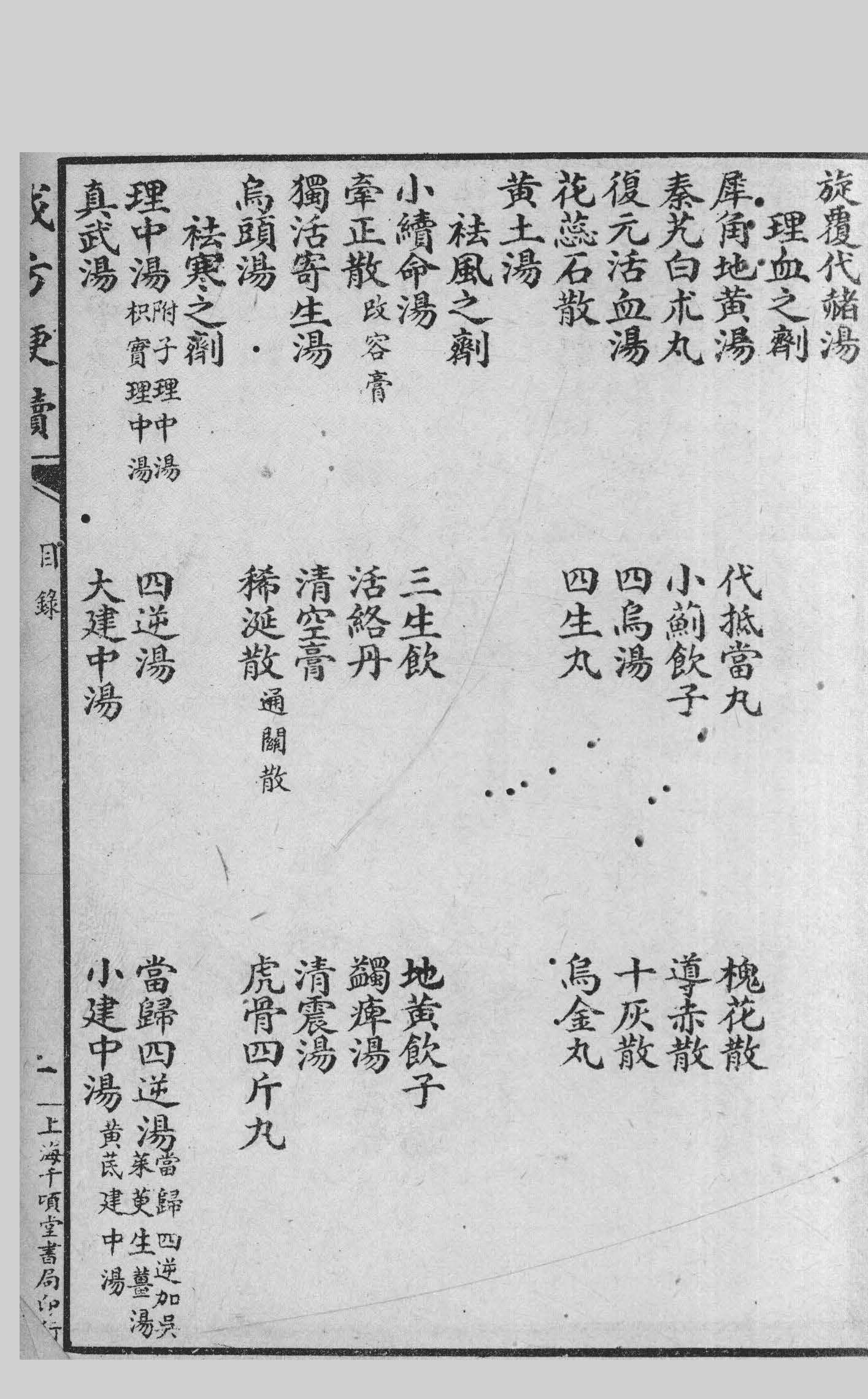 此书原為初学者诵习而设,不过使之胸有成法可寻故其中歌诀,止取谐声不限音韵,且歌中均以方名贯首,平仄亦在所不计,读者谅之。