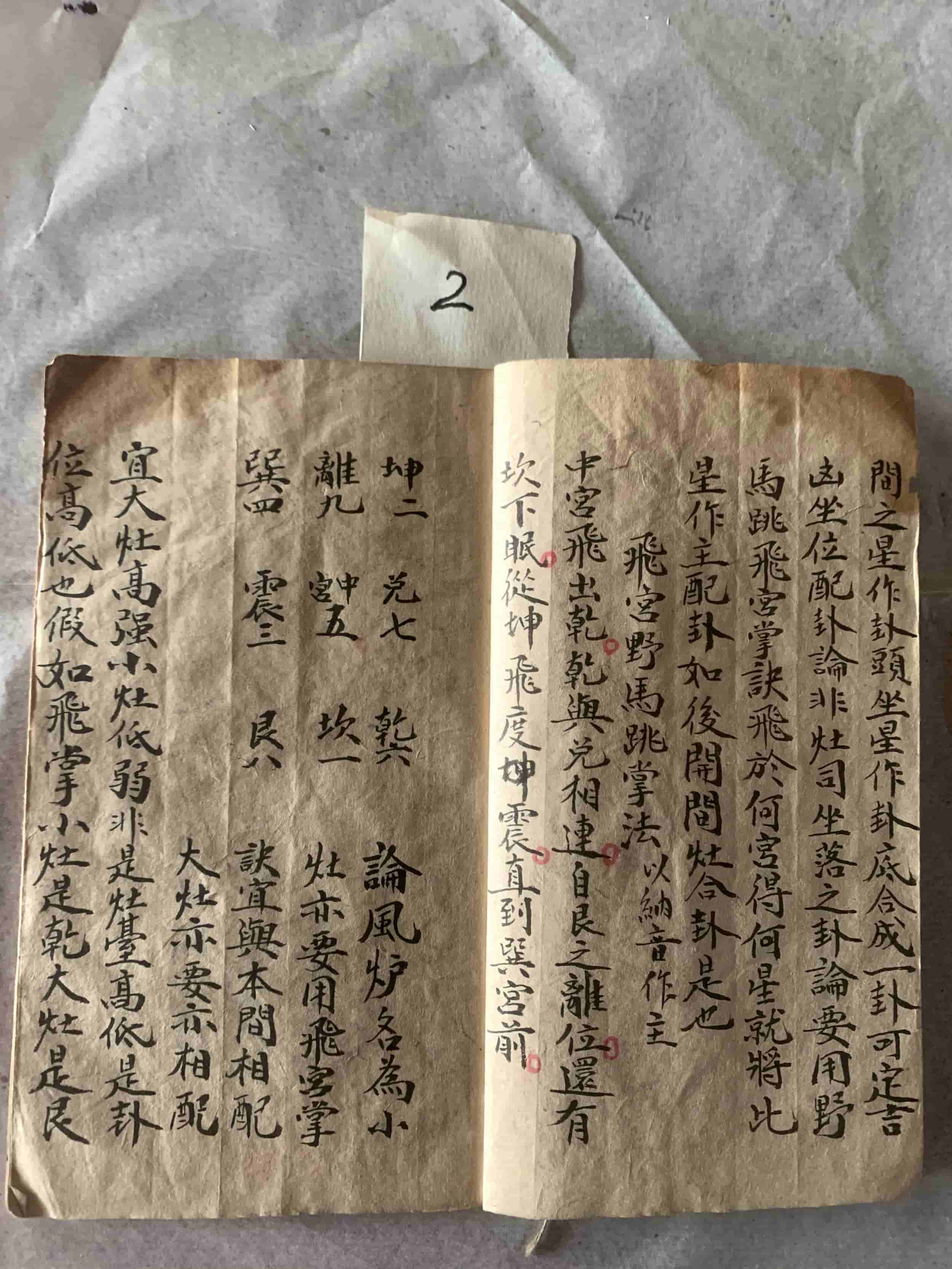 《论灶》手抄古籍,全本23个双面,合计46页。内容包含论灶,飞宫野马跳掌法,论间配灶合卦法每间同推等。