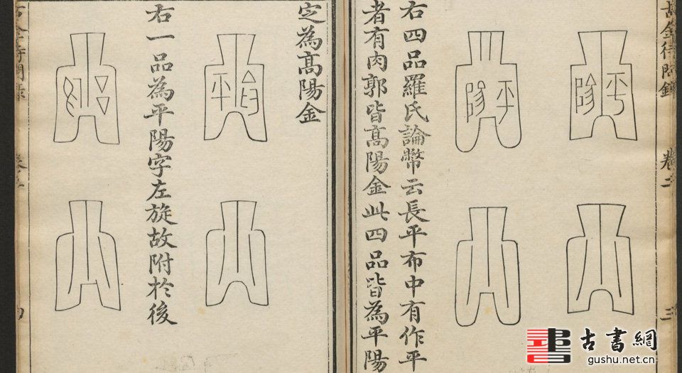 清乾隆初年朱枫在长安得瓦30种,摹刻原形名为图记,成此书。卷首有清乾隆24年自序。这是我国第一部研究瓦当的专著。附《古金待问录》此书收先秦录各种刀布钱币图案。