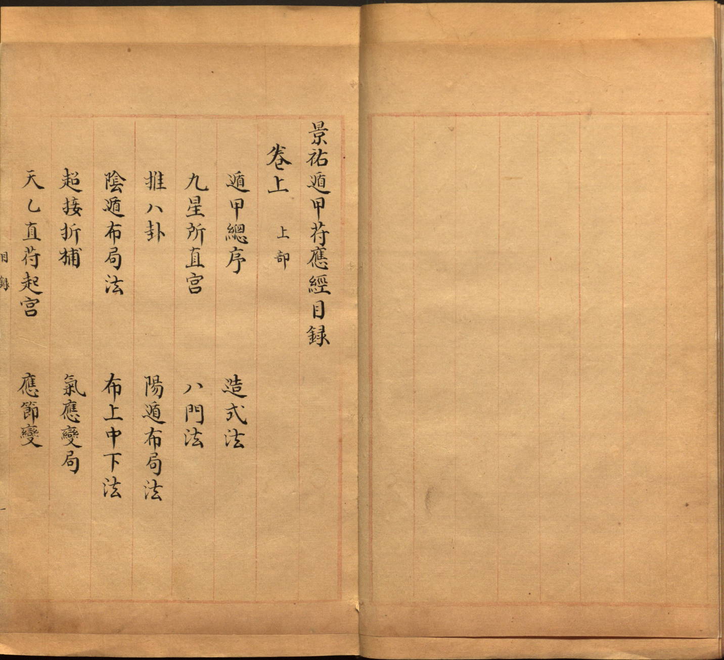 《景祐遁甲符应经》6卷.明末朱丝栏钞本
