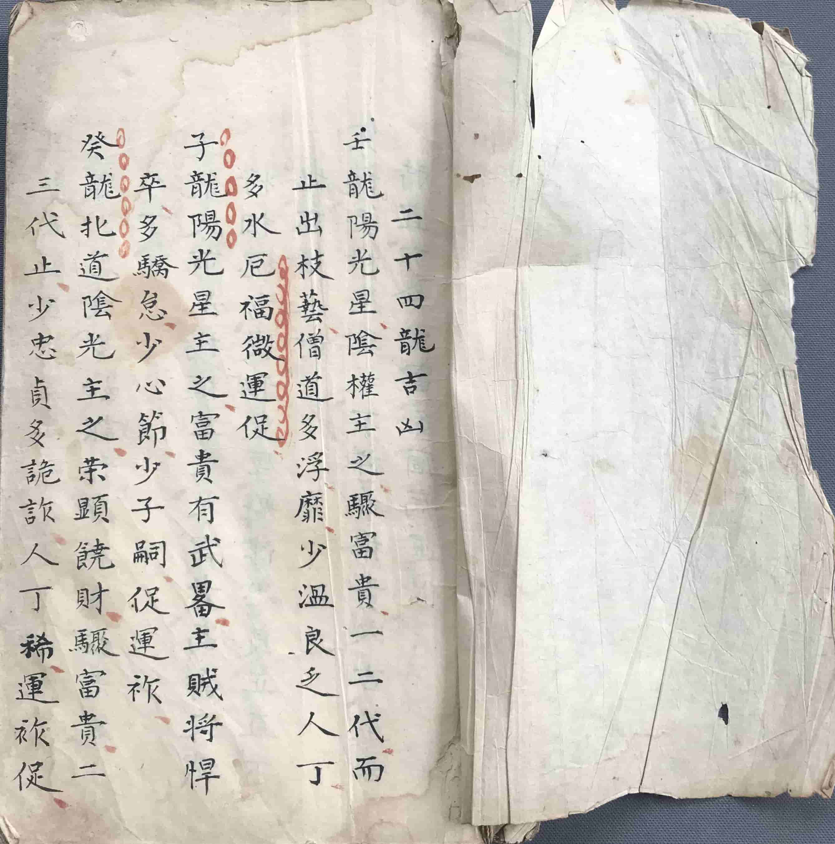 《杨公真旨要诀二十四龙吉凶断》,光绪十一年桂月乔发堂清写本,全本共111个双面,合计222页。