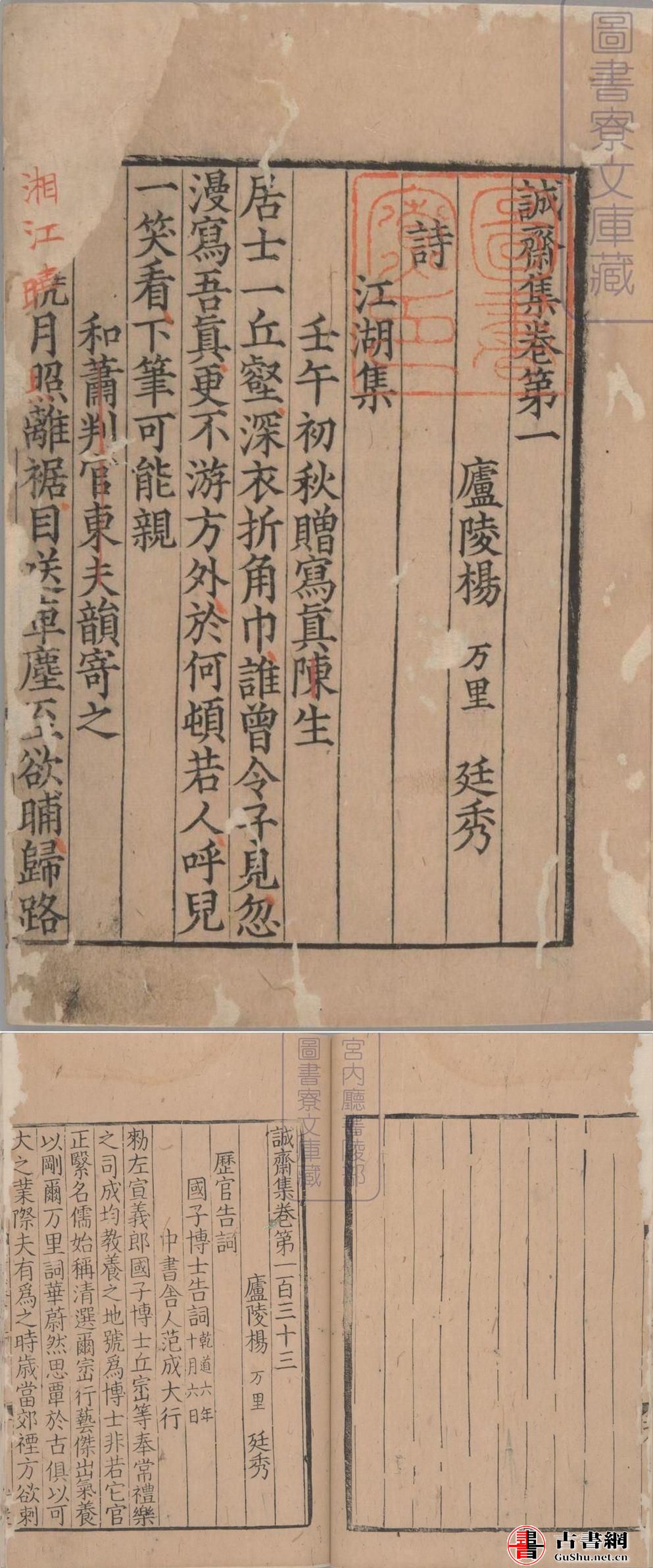 古籍.诚斋集.133 卷. 目 4 卷. 宋杨万里撰. 杨长孺编. 罗茂良校. 南宋端平 2 年跋刊. 有补钞丨日本宫内厅书陵部藏