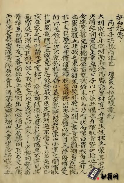 《红白花传》是明代文言长篇才子佳人小说。十回。不题撰人。成书于明末。