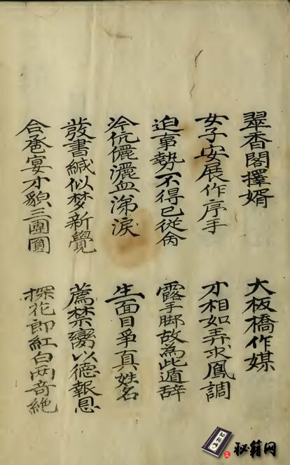 大明成化年间,河南洛阳县聚星村荀景华与桂冬荣,同为文人,又系连襟。桂夫人生一男,取名一枝;荀夫人生一女,取名织素。时不多久,桂夫人生病而亡,一枝就由荀夫人喂养。一枝,织素青梅竹马,两小无猜,再加上都长得秀美聪敏,深得荀公夫妇钟爱。到了启蒙年纪,就跟桂冬荣习学文章。桂冬荣虽有才情,但仕途不佳,一举不成,羞于再试。而荀景华却春风得意,官运亨通。那一双子女自随桂冬荣后,从早到晚,同进同出,不但文才渐进,而且感情日深。荀夫人在织素十岁时,一病不起,去世前,嘱咐荀公:待一枝、织素长大成人,即将他们结成夫妇。。。。。。。。