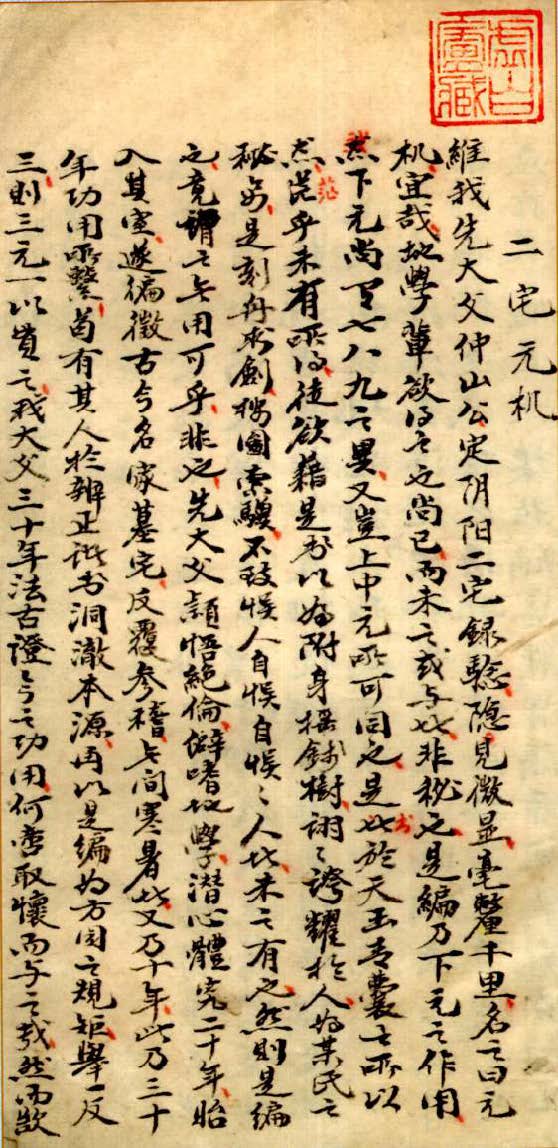 维我先大父仲山公,定阴阳二宅録验,见微显毫釐千里,名之曰元机,宜哉,地学辈欲*云也尚已,而未之或与书非秘也,是编乃下元之作用,然下元尚?七八九之異,又岂上中元所可同也,是书所以於天玉青囊之所以然,徒欲藉是书以为附身摇钞树,诩诩夸耀于人,为某氏之秘,是刻舟求剑,按图索骥,不岂误人自误之人书,未之有也,然则是编也,竟谓之无用可乎,非也,先大父显悟绝伦,僻嗜地学,潜心体究二十年,始入其室,遂编徵古今名家墓宅,反覆参稽,无间寒暑,又乃十年,此乃三十年功用鸿击,苟有其人於辨正讹书洞澈本源,再以是编为方用之规矩,举一反三,则三元一以赀之,我大父三十年法古澄之功用,何啻取怀而与之哉,然而洞澈辨正讹书本元,难之也,大父当日五十年,三吴两浙,恨不*一知已,诚殆可谓间世一无此哉。