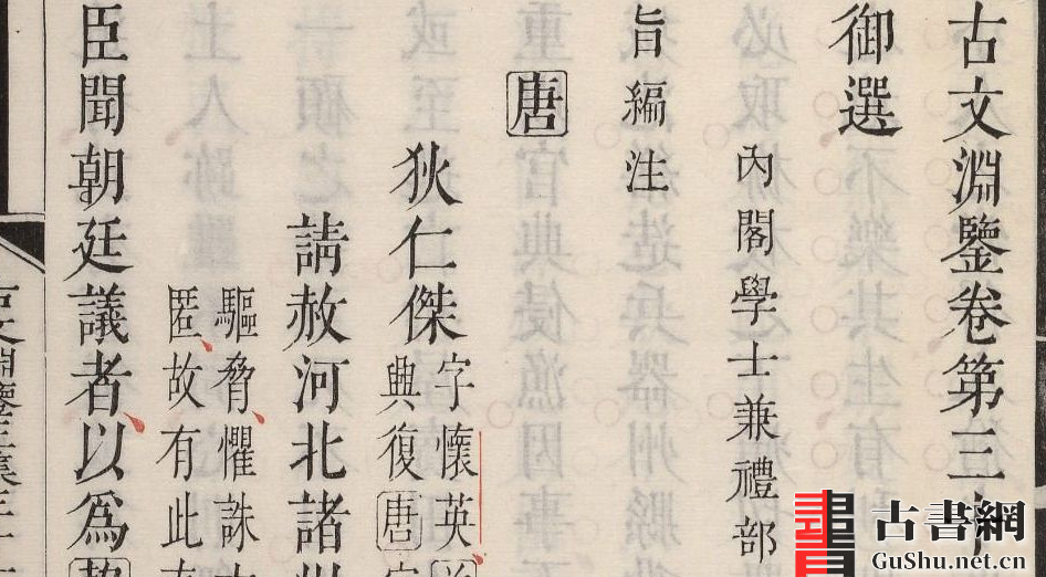 古籍.古文渊鉴.64卷.清圣祖选.徐乾学编.清康熙49年武英殿刻五色套印本.1710年