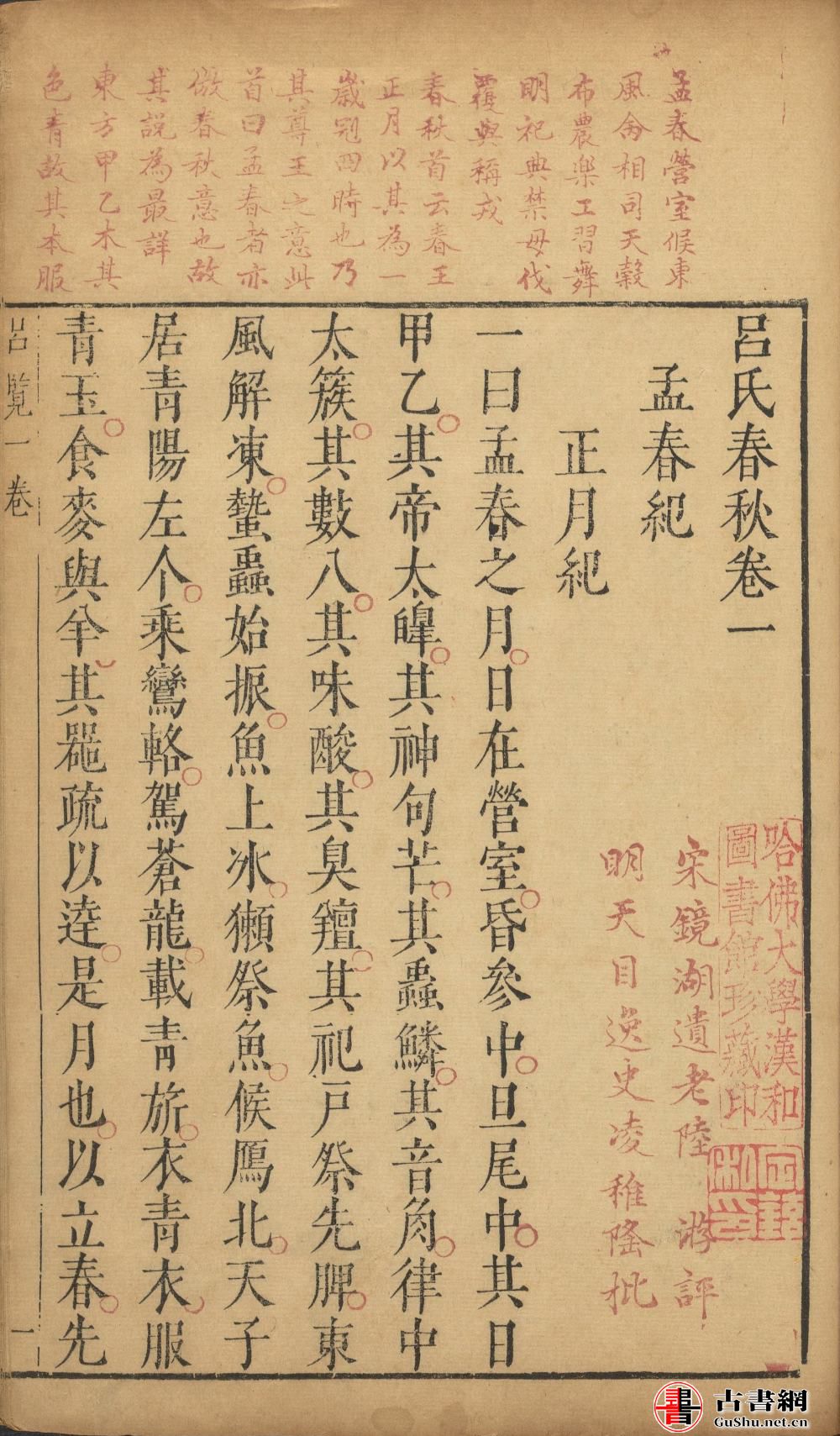 古籍.吕氏春秋. 二十六卷. 明. 凌稚隆批. 明万历四十八年吴兴凌氏刊朱墨套印本