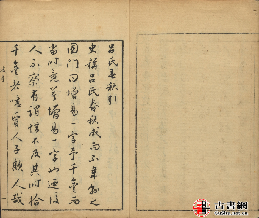 读吕氏春秋(方孝孺撰)、吕氏春秋引(凌稚隆撰)、吕氏春秋叙(王世贞撰)、吕氏春秋序(高诱撰)、镜湖遗老记