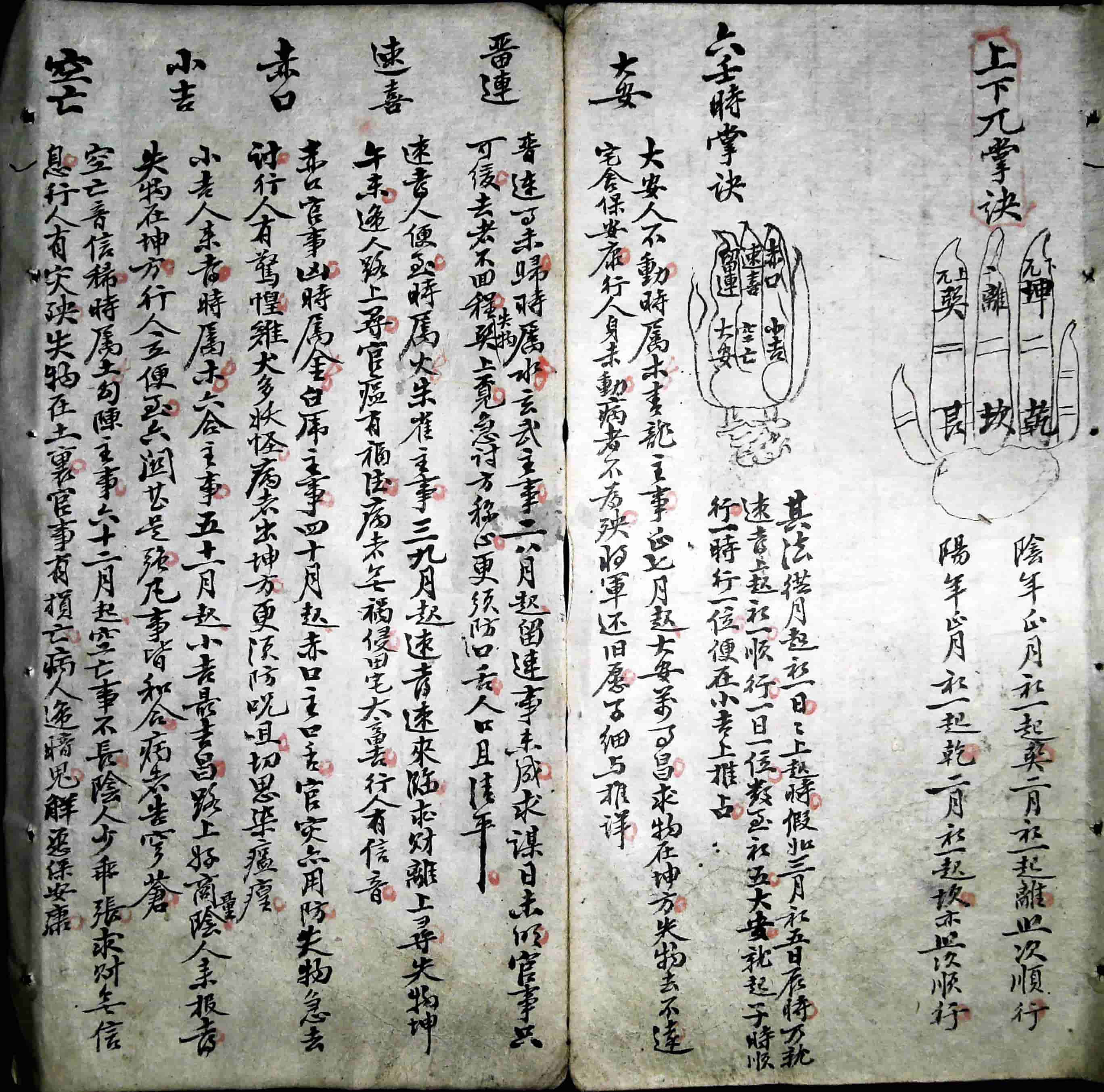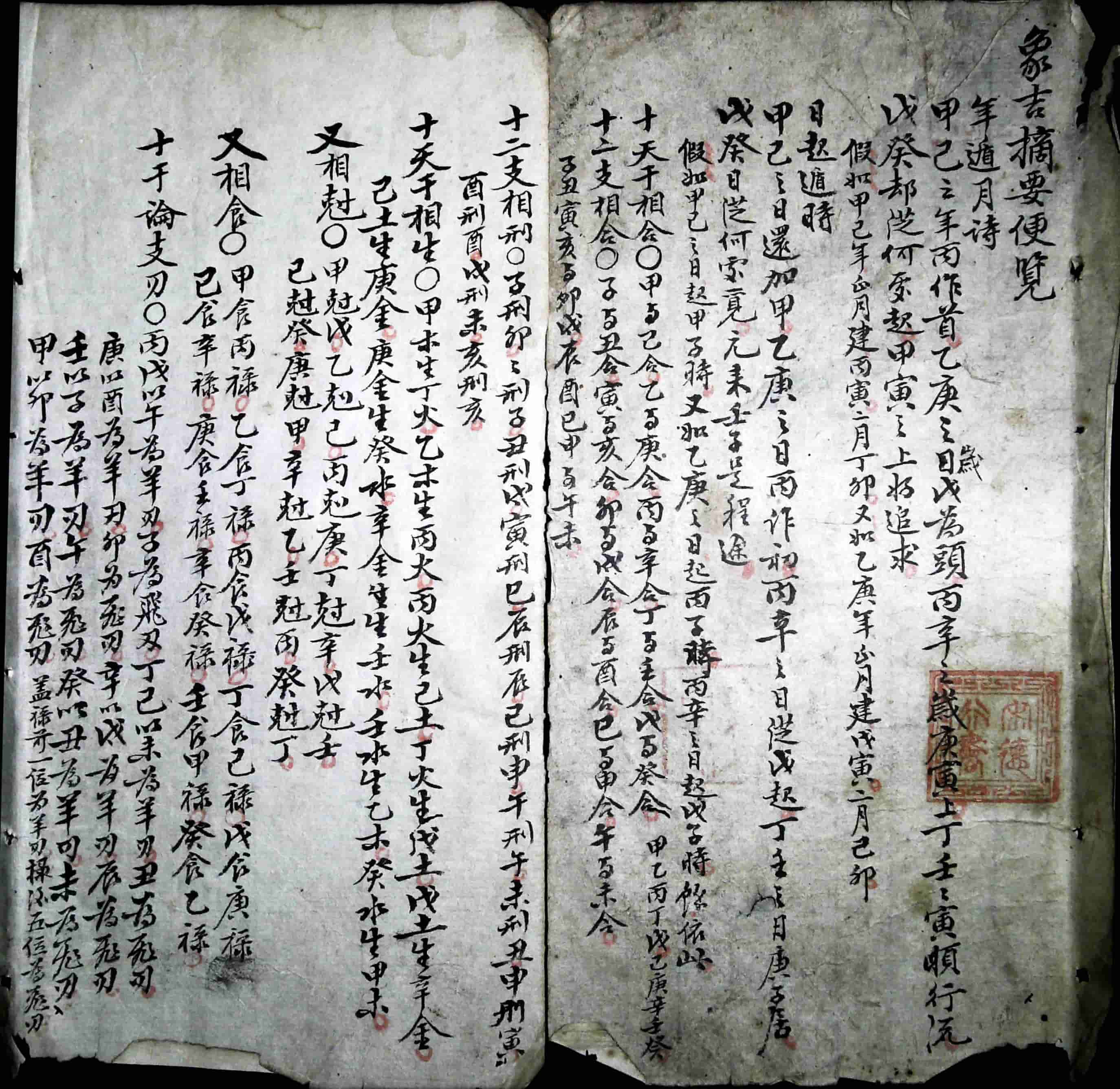《象吉摘要便览》手抄本,详论大大小小诸事宜忌、命理推算,附诸多掌诀图示,内容丰富详细实用,研习运用此诸法断事,可趋吉避凶,无往不利,永葆利贞,全本共88个双面,合计176页,书法极好。