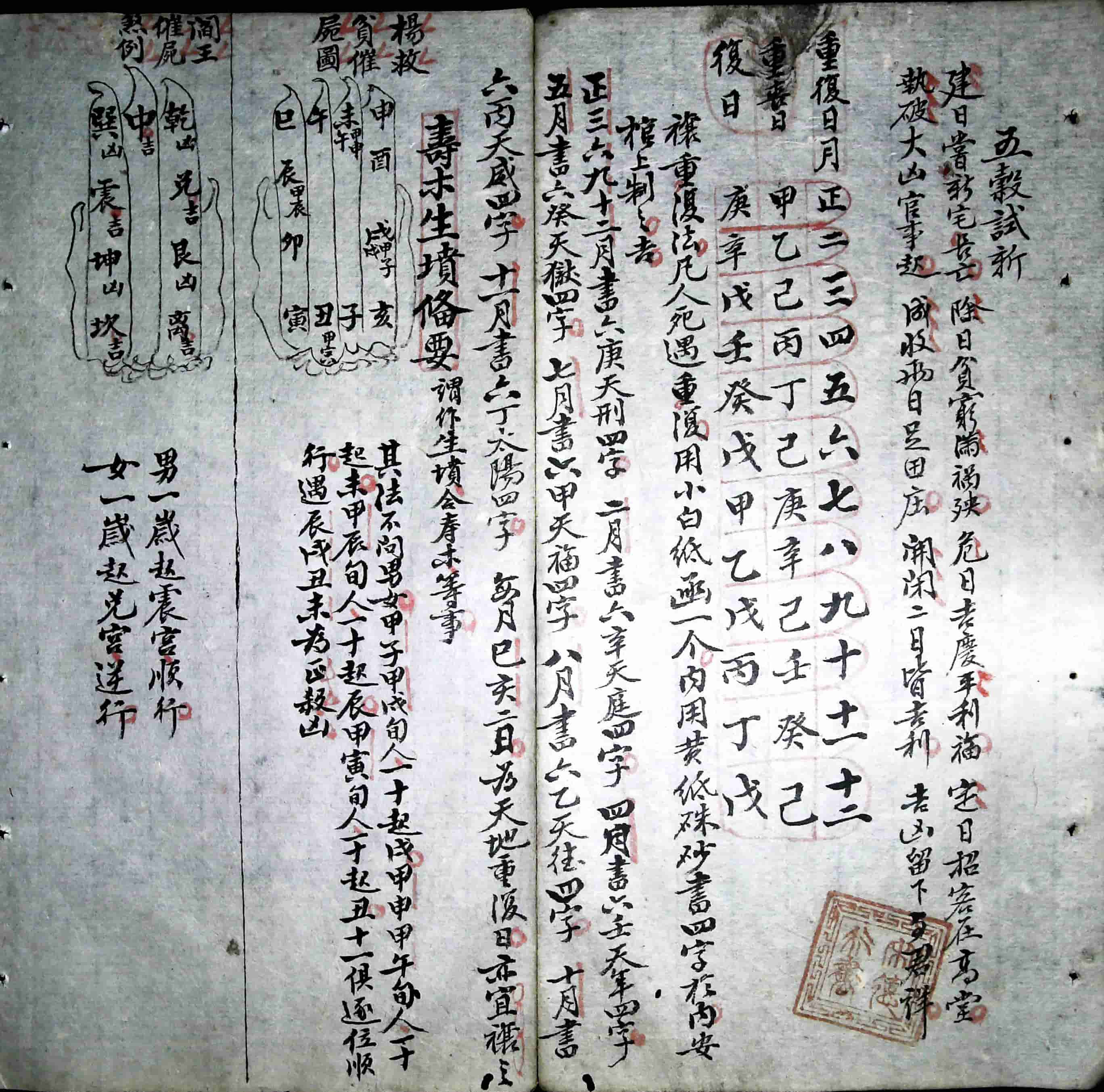 内容包括:年遁月诗,起禄法,起山运诀,论命中六亲取用,飞宫掌诀,上下元掌诀,六壬时掌诀,论正月阴阳不将日,论披麻杀日,论古历书不可尽信,论受死日,论大杀白马入中宫,论隐伏血刃占中宫,论月忌日,论嫁娶周堂,论大断日,论红纱杀,论纳婿周堂,论行嫁白马,论古历行嫁凶方,论新人入门杂忌,论新人拜堂,论红嘴朱雀,送礼纳吉,男女嫁娶,开山起土安桥,阴阳不将日局,逐月不将嫁娶吉日,论婚姻,婚姻吉宿,论正桃花诗例,小儿关煞,逐月安床设帐吉日,助气脉定论,双山全秘诀,选择要论,造门凶神,入宅移徙,修造动土,起工驾马,断除白蚁吉日,鲁班杀局时并方吉凶定局,监造宅舍,鲁班刀杀,论天地空亡,均分家财,安修厨灶,寿木生坟备要,论合寿木,论开生坟,四轮经例,逐月合寿木吉日,逐月开作生坟吉日,葬事祭主本命忌避,化命避凶,行丧停丧杂忌,破土斩草安葬诸忌,墓龙在塚,逐日吉神图,男女冲天妙数总诀,论贵贱八字格等。