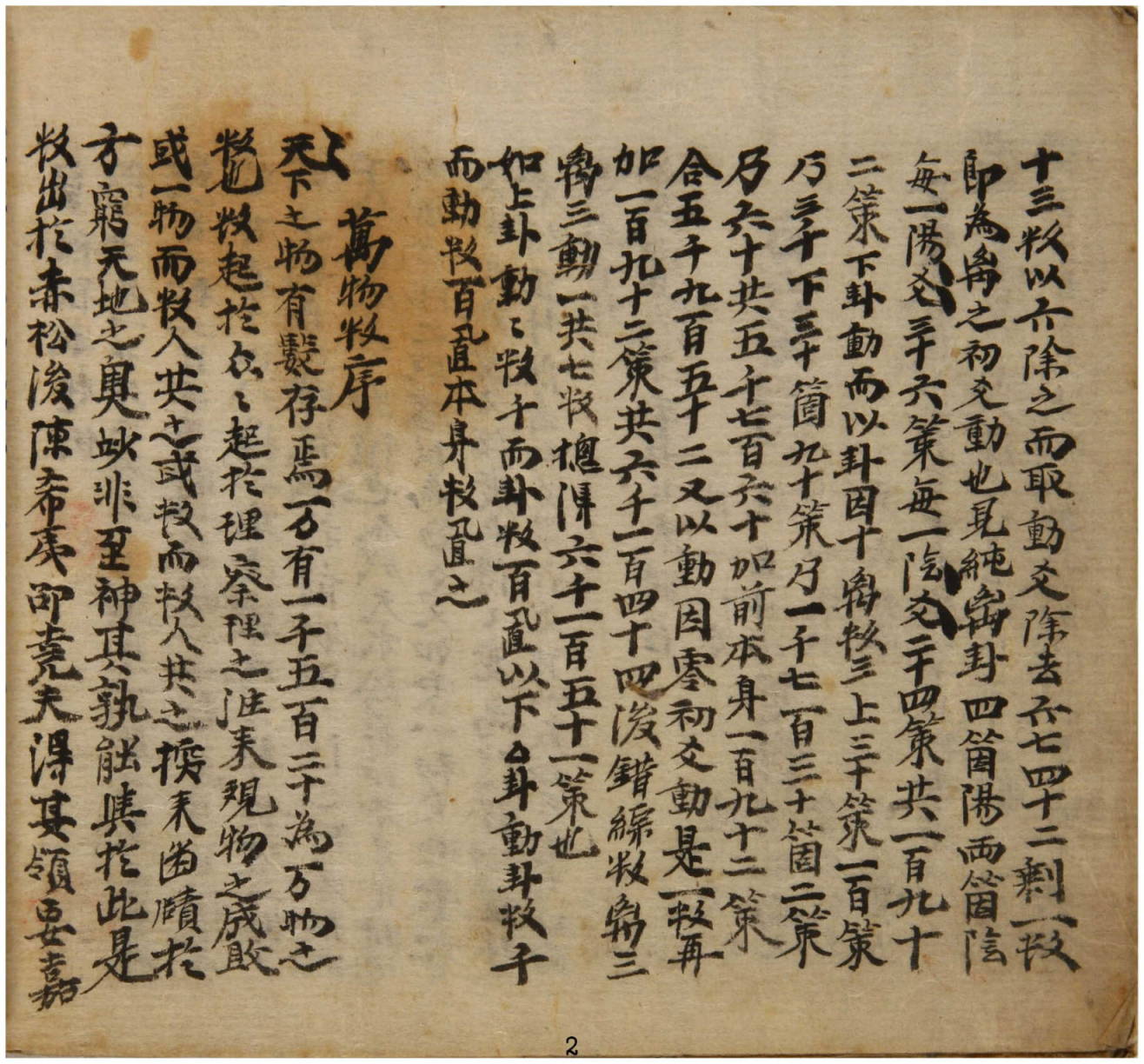 《万物数》,封面题为心易,开篇为皇极祖数起例——万物数序——万物数赋等,内容为演算邵雍元会运世十零百千占卜之数法。