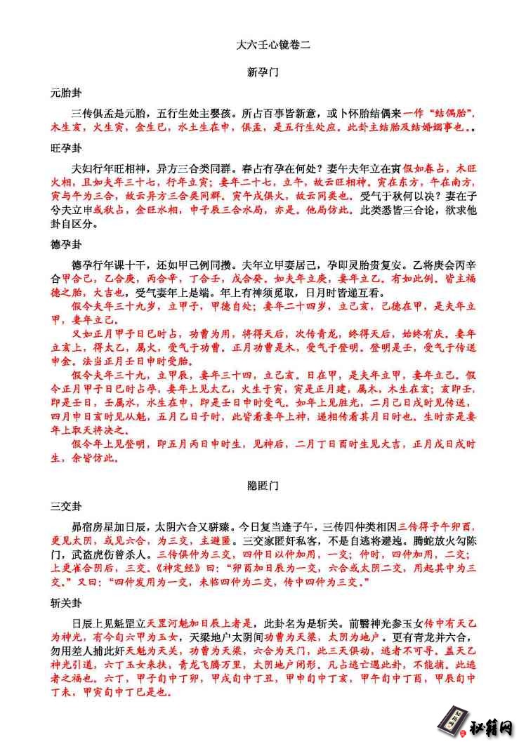 《大六壬心镜》内容截图如上: