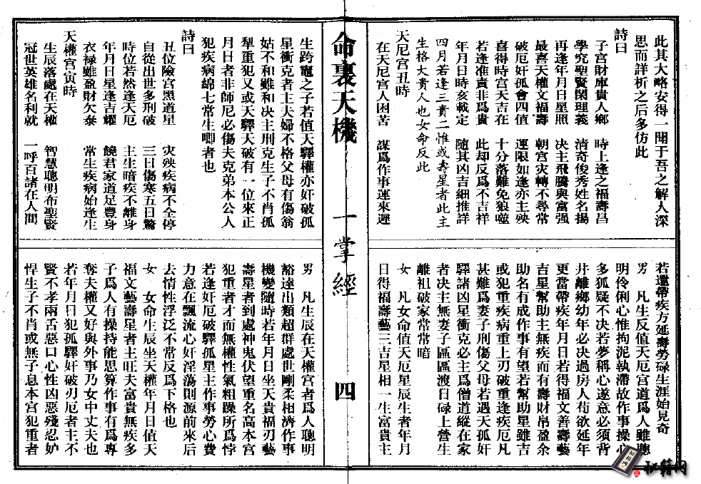 《命理天机一掌经》本为定欲出家之人的善恶智慧,但也有定儒者贵贱功名的内容,后来经历代传人的不断总结和发展,形成了比较稳定的规模。
