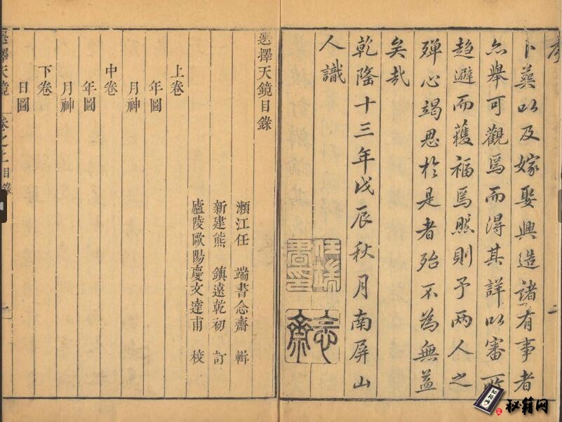 《選擇天鏡 》三卷 任端書輯 ; 熊鎮遠訂. 庭鑑校刊朱墨套印本.清乾隆