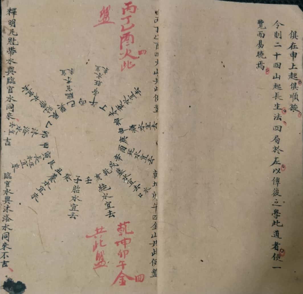 山水砂水绕明堂,福寿康宁大吉昌,男女俱快乐,六畜满山岗,三六九年生贵子,寅午戌年名远扬,已酉丑年添丁口,仓库盈满万斯箱,坟中生紫草,儿孙保安康,丁己二方有峰,出人秀美,富而且贵,已酉丑年应,寅午二方主申子辰,寅午戌年,已宫有峨眉山出女贵。