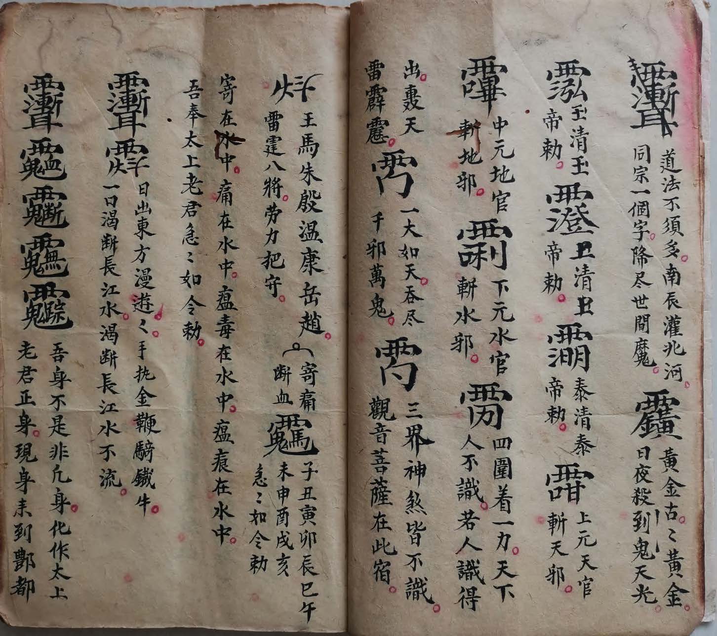 内容包括:启请诰、令牌坐乾对巽(以令牌台上画讳)、隔山断血、观音咒、萨翁咒、玄武咒、三元和合咒、神符妙法、杨公符、修犯加讳、照身符、王帅符箓、九龙水、小儿摸惊法、又加破念法字、八卦姓、敕惊素字号、一治缚疟讳、一治心痛加气痛、一治伤寒冷、一治热烦、一治疮毒、一治癫狂用、一治疾病、一治痰结水冷发汗用等。。。。。