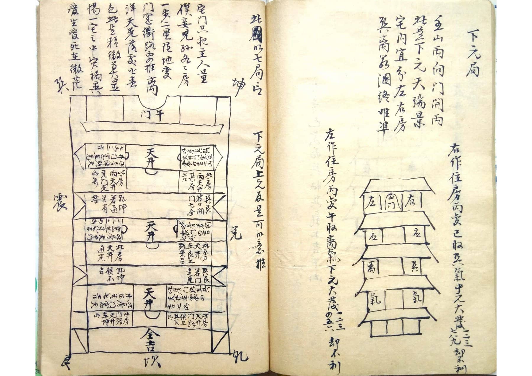 《阳宅玄运》相宅元运歌图,作者荆溪朱超,号蓝田先生,乾隆乙卯初夏錄于文峯轩下,全本共83个双面,合计166页。