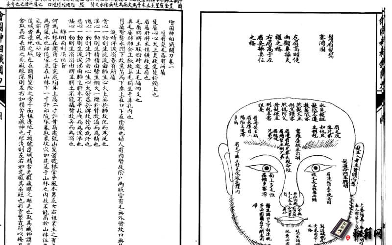 清代卦书《绘图神像铁官刀》,一套四卷全,光绪戊申年上海锦章书局印刷。并配有面部图像。大凡观人之相貌,先观骨格,次看五行,量三庭之长短,察面部之盈亏,观眉目之清秀,看神气之荣枯,取手足之厚薄,观须发之疏浊,量身材之长短,取五官之有成,看六府之有就,取五岳之归。