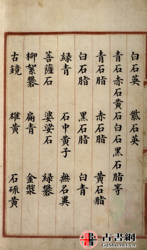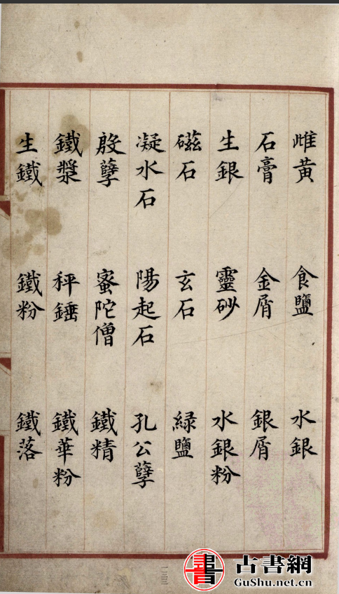 《补遗雷公炮制便览》书高320毫米,宽210毫米;框廓高248毫米,宽176毫米;半叶8行,行16字。 文字内容大致可分三部分:一是大字正文,内容为药名、味、性、良毒,功效主治,出产、形态、别名等;二是用小字转引“雷公云”条文;三是七言歌诀,再次归纳药物的性味功能。 据目录,该书原有14卷,今实存13卷,脱失其中第12卷及若干药物的图文,实存完整药条906种,彩图1128幅。将该书实存插图,加上可考的脱漏插图,可推算原14卷应有插图约1193幅。 浮现于世的《补遗雷公炮制便览》是存世孤本,弥足珍贵。此次仿真精印 除原貌呈现外,还在附卷中增入了日本收藏的《精绘本草图》中的部分插图,收有《补遗雷公炮制便览》原本脱漏的大部分果部及少量金石部药物插图,以补遗珠之憾。