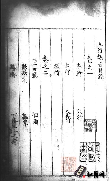 《五行类事占徵验》·六卷(安徽巡抚采进本)
