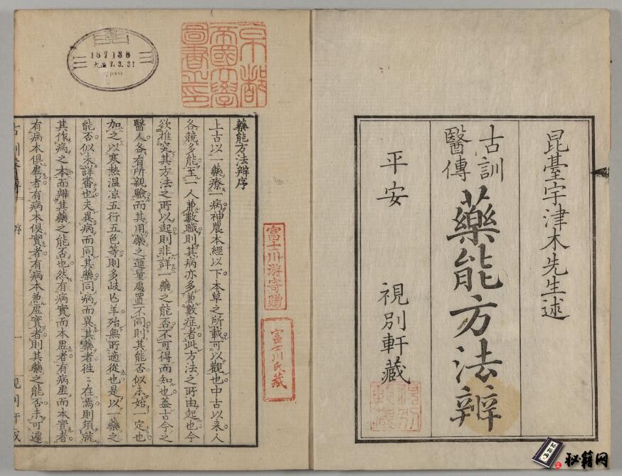 一本药性辨别及药性作用的论述有中医古籍《薬能方法弁》 5巻
