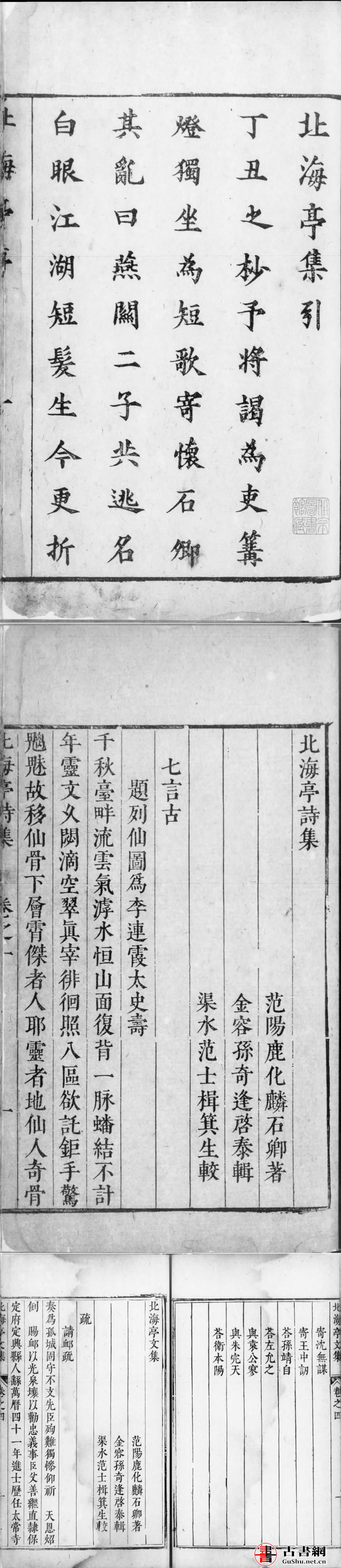 古籍.北海亭诗集. 四卷. 明. 鹿化麟撰. 明崇祯十二年刊本. 灰度胶片