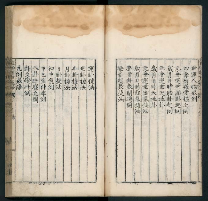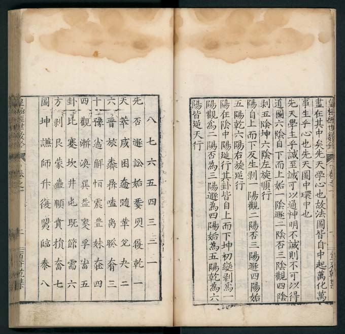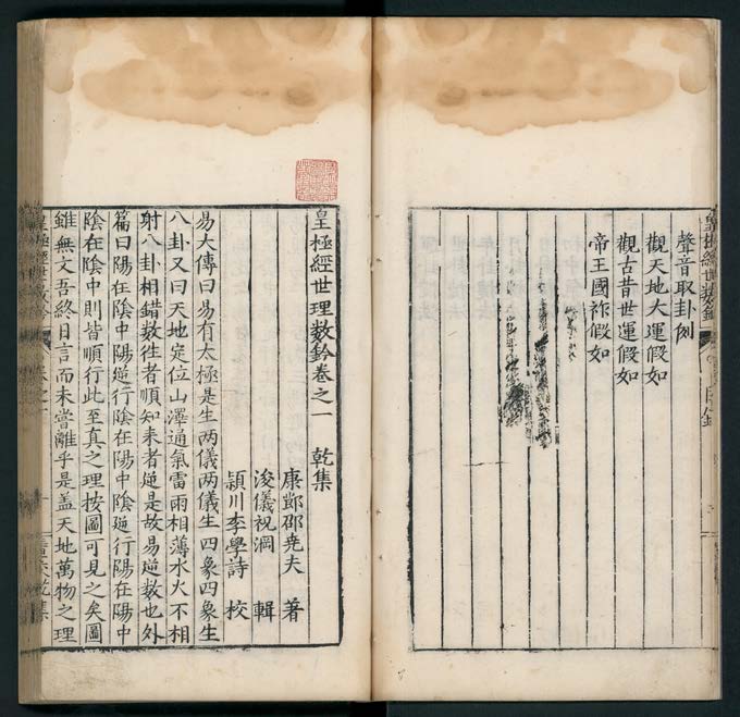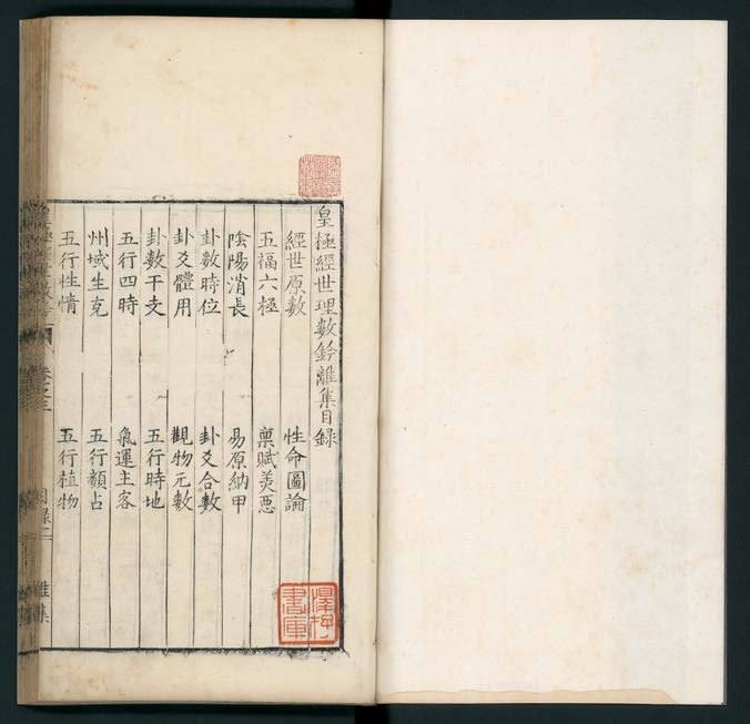 《皇极经世理数钤》乾、坤、震、巽、坎、离、艮、兑,八卷,(宋)祝泌撰,明万历壬辰(二十年, 1592)潁川李学诗校刊本。