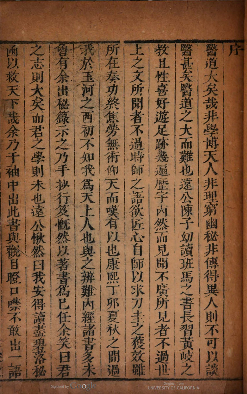 《石室秘录》康熙28年刻本,全书共854页,为清代著名医家陈士铎编著。陈士铎,字敬之,号远公,别号朱华子,自号大雅堂主人,浙江绍兴人。明末清初著名医家。约生于明天启年间,卒于清康熙前期。陈氏一生著述颇多,据嘉庆八年《山阴县志》记载,陈氏传世之作近20种,但今存世的仅6种。
