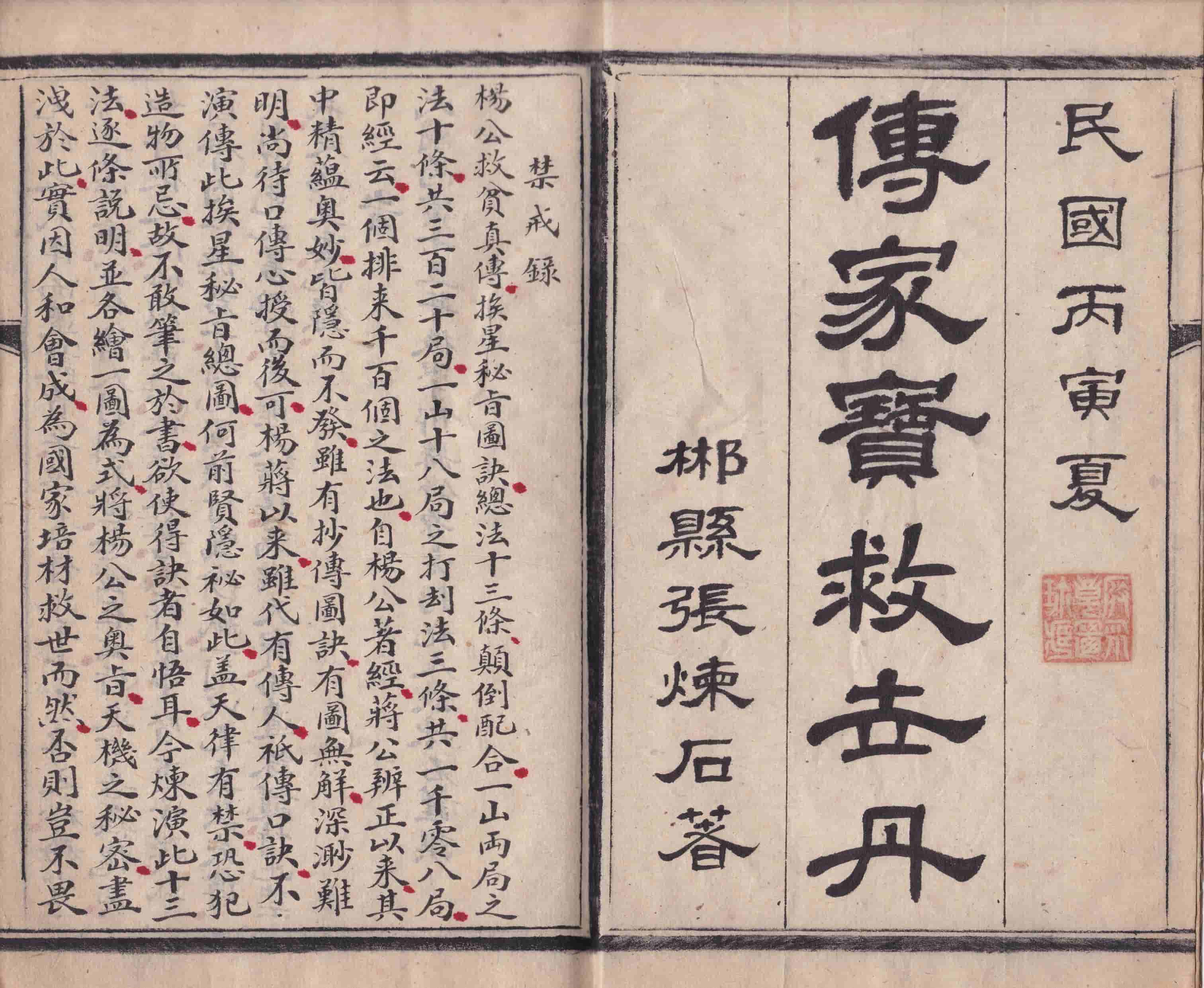 《地理传家宝救世丹》民国丙寅十五年夏,后学郴县舒源老朽杞人张炼石谨譔,全本共30个双面,合计60页。