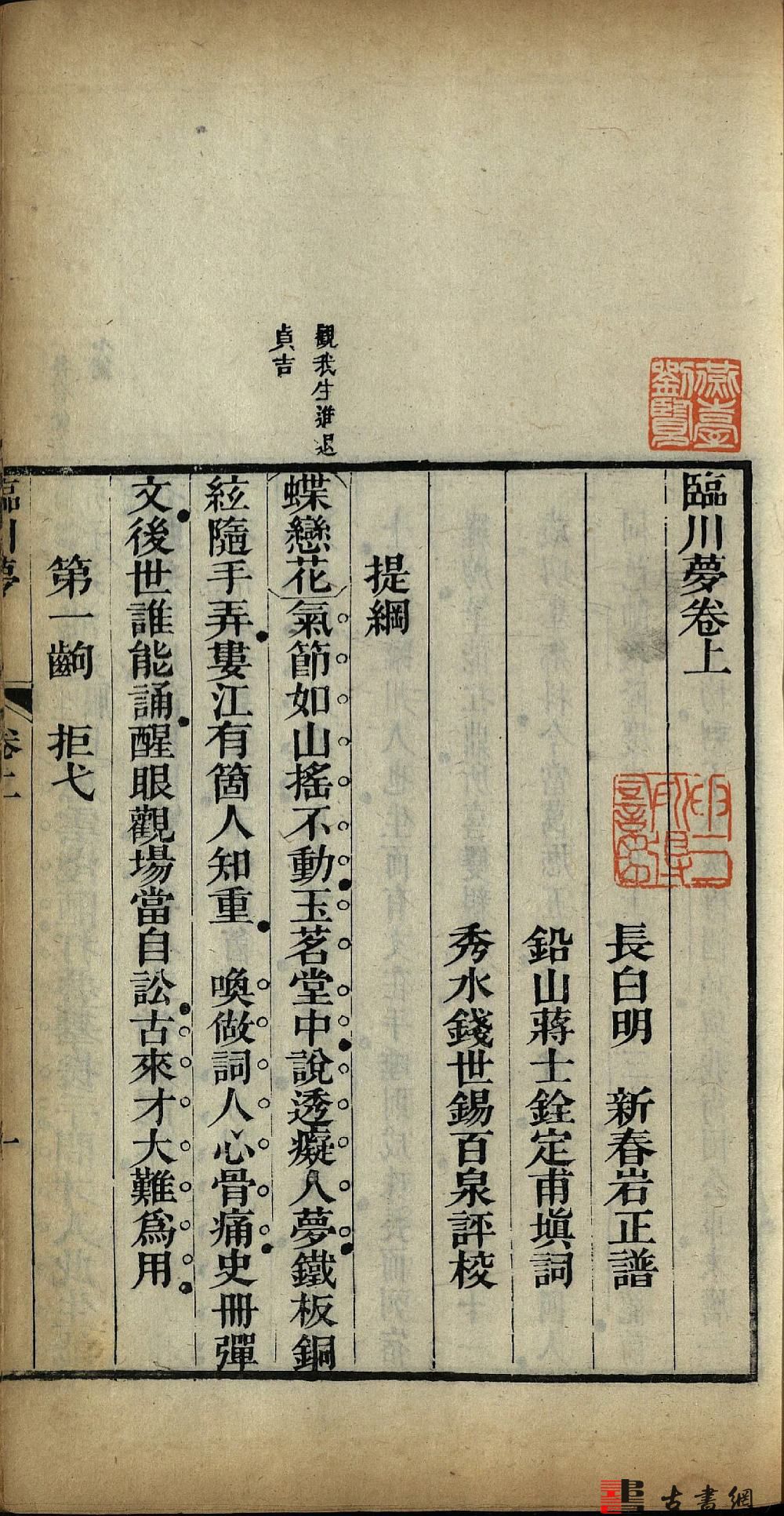 每种皆有单独书名页,卷草花框。正文天头上镌小字评语。